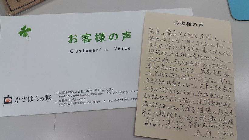 そんな時に、知人からシックハウスだと思うと教えていただき、笠原木材様に
