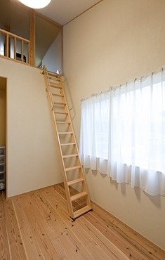 左)笠原木材の提案で設置したロフトは約20帖のスペース。子供部屋からもリビングからも、ロフトへ上ることができる。