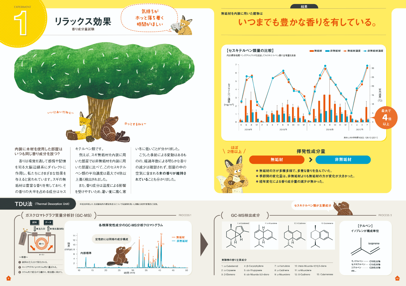 こうした季節による変動はあるものの、経過年数による明らかな香りの減少は確認されず、部屋の中の空気に含まれる木の香りが維持されていることもわかりました。