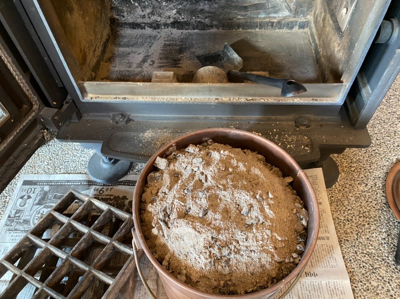 灰は畑に撒いたり、タケノコやワラビのアク抜きに使用できます。