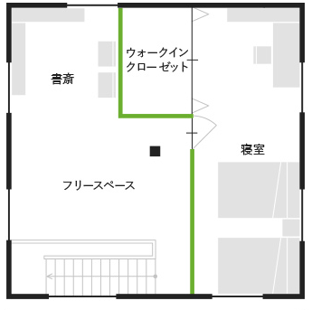 夫婦それぞれの趣味の部屋、もしくはそれぞれの寝室として使用できる間取りの工夫。