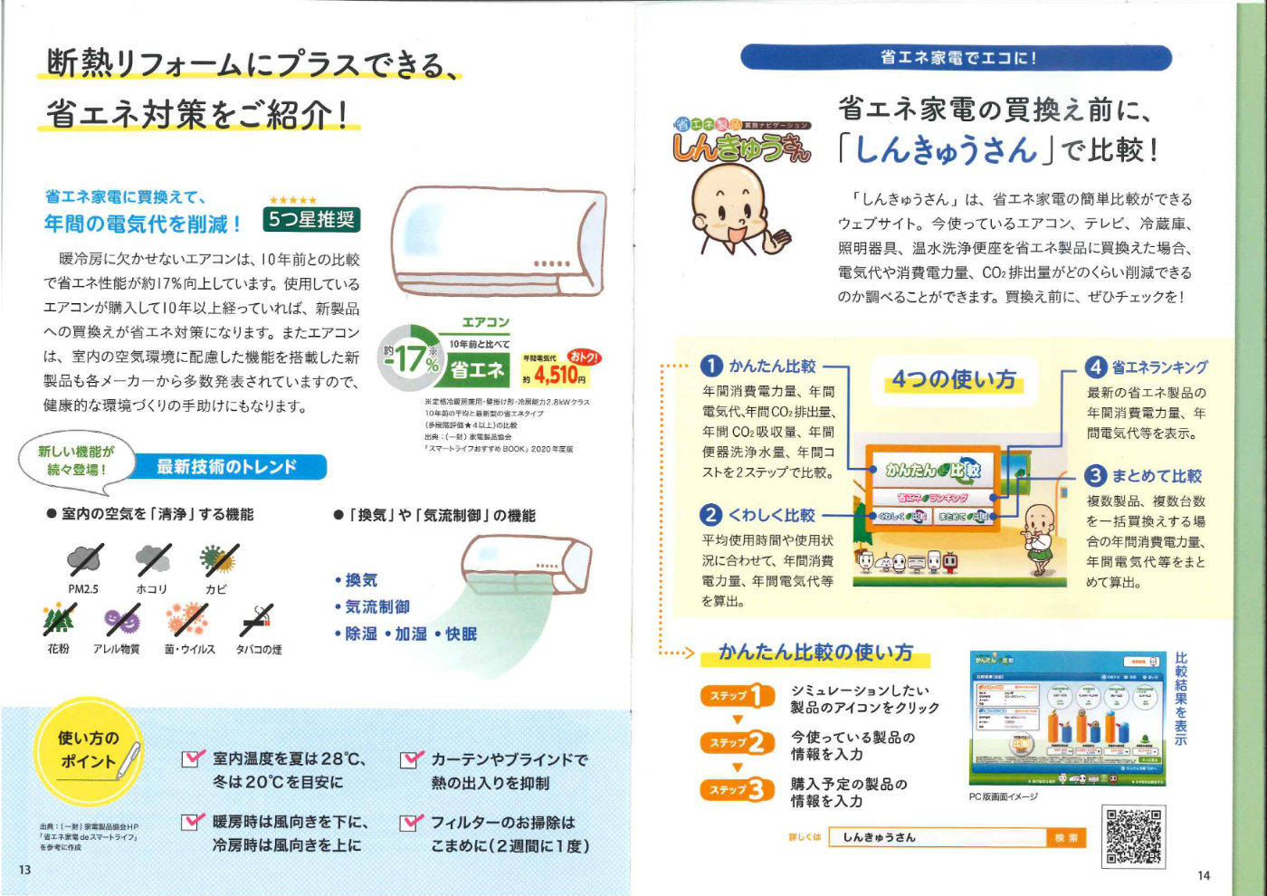 最新の省エネ家電などの買い替えも、断熱リフォームの一つとして考えてもいいでしょう。 使い方のポイントなどをよくお読みななればより快適かつ効率的に過ごせると思います。 また、省エネ家電の買い替え前に簡単に比較できるサイトも紹介していますので、ご参考下さい。