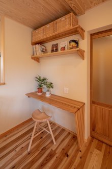 また、珪藻土や無垢の杉板を使用している事で、アパートに仮住まいとして住んでいる時は喉の調子が良くなかったが、お住まいになられてからは喉の調子も良くなったとの事をお聞きし、自然素材の力は本当にすごいものだと、改めて実感しました。
