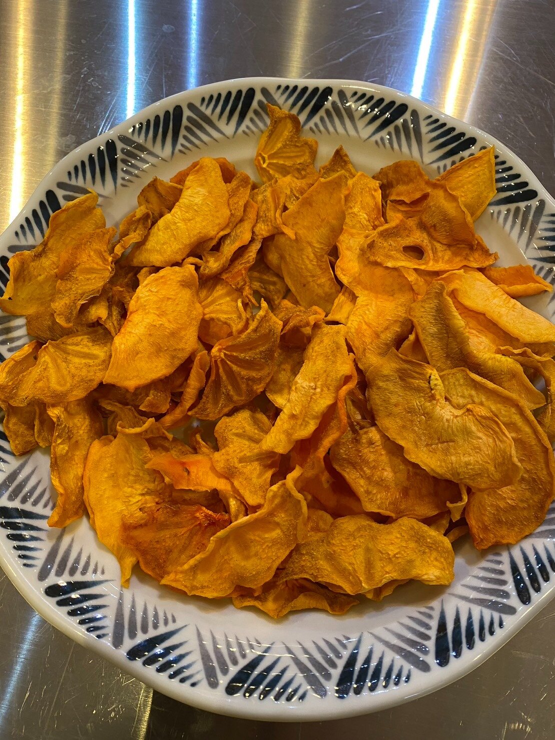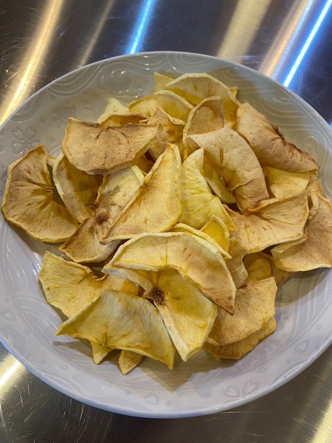 薪ストーブクッキングでは、昨日から準備した『柿チップス』と『林檎チップス』が良い感じに仕上がりました。