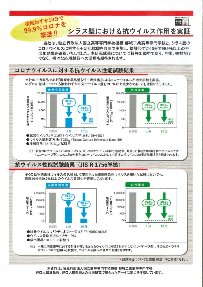 高千穂シラス株式会社より【 シラス壁における抗ウイルス作用を実証 】という驚きの内容でした!