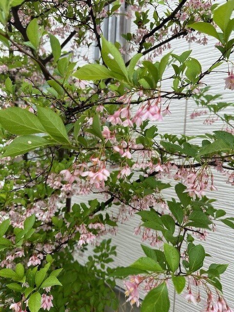 エゴの木に淡いピンクの花が鈴なりに咲いていました。