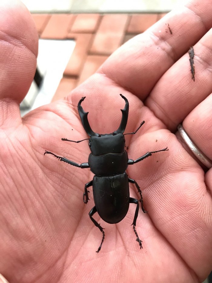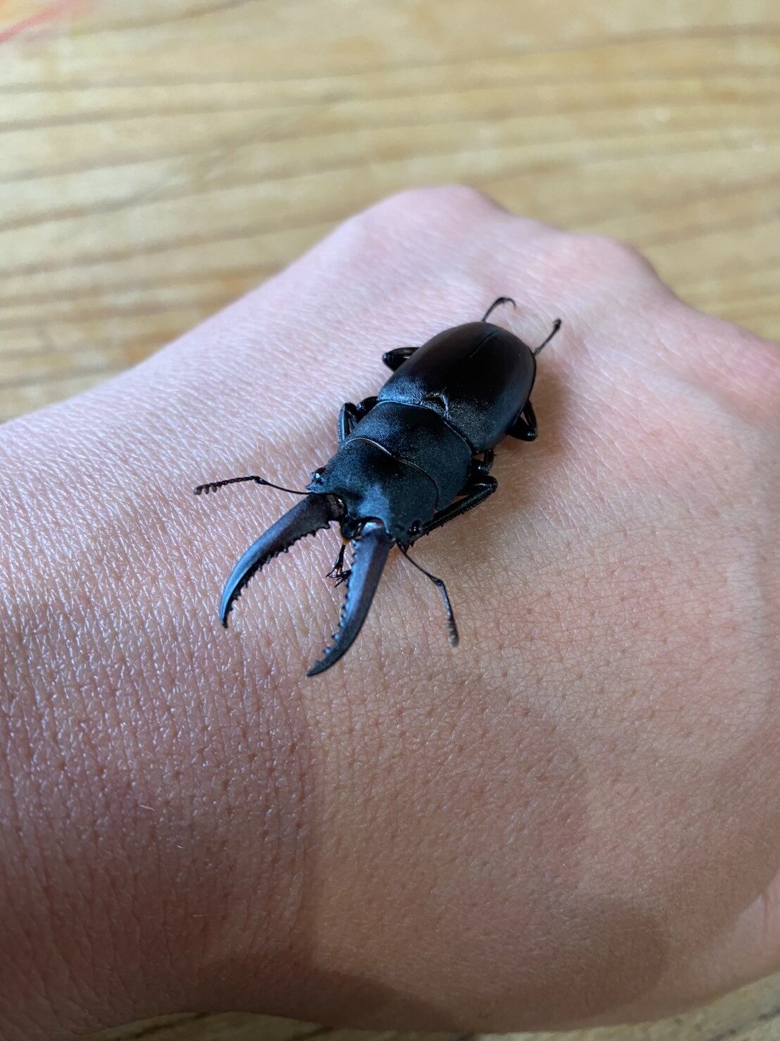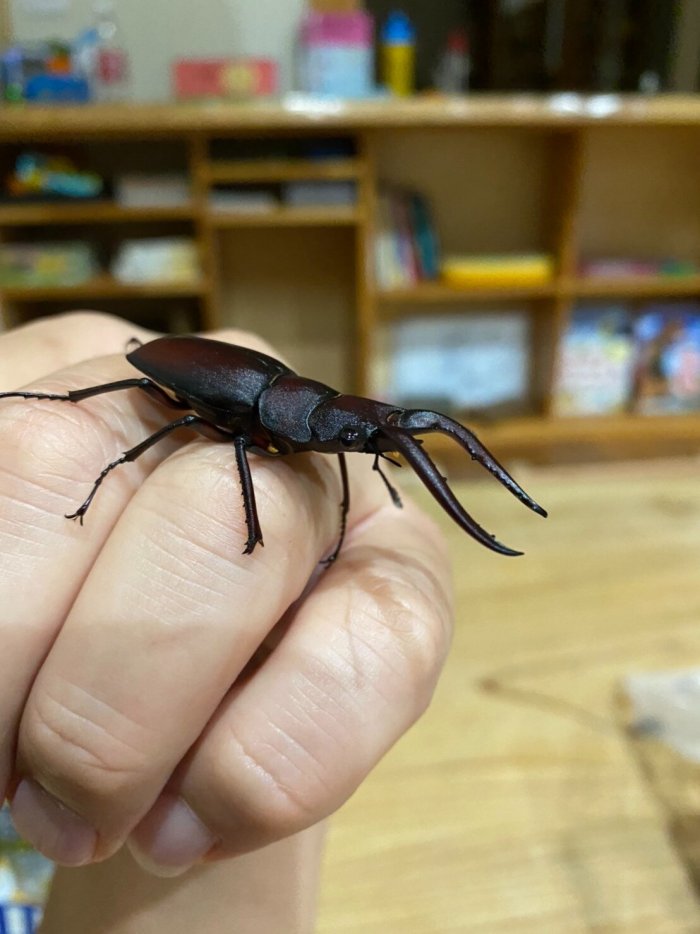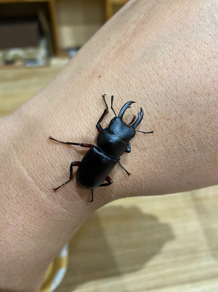 コクワガタに似ていますが、ひっくり返すと足が真っ赤なのですぐ見分けがつきます。