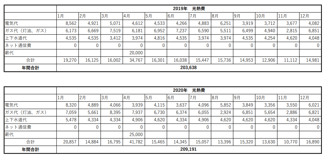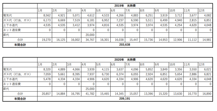 一年間におよそ200,000円程度の光熱費がかかりました。