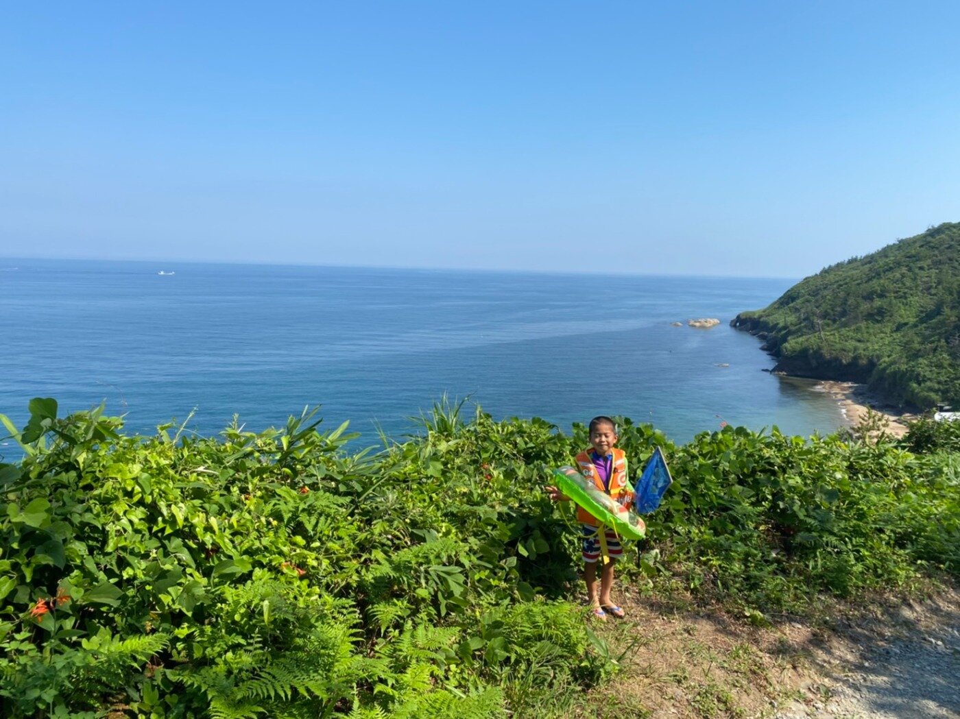 今から海水浴に行くというのに、こんな絶景を楽しめる所は他にはないだろう。