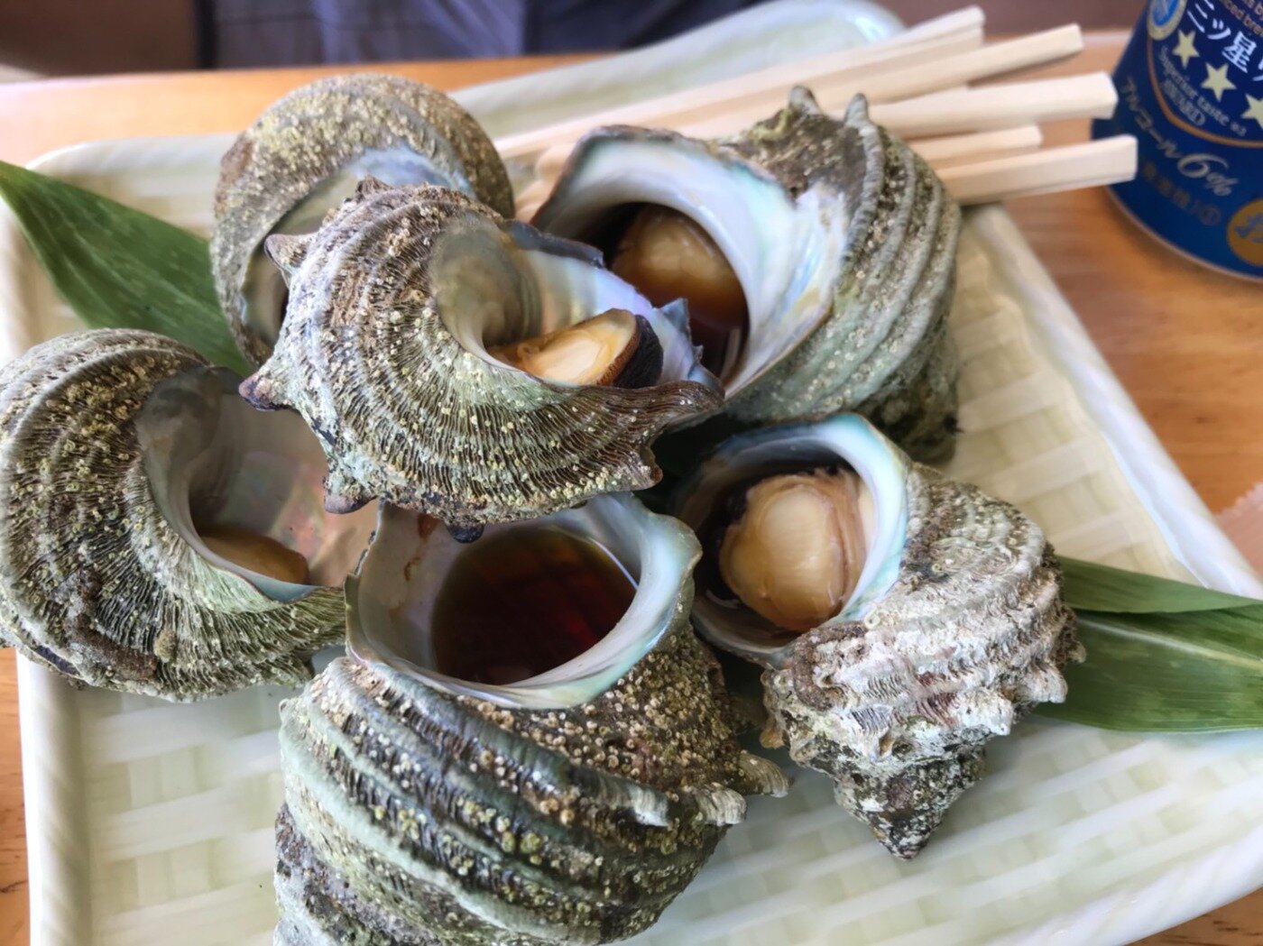 『サザエのつぼ焼き』目の前でとれたサザエ。ビールのアテに最高だ。