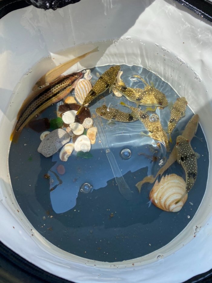 キスが二匹とベラ。フグがたくさん。