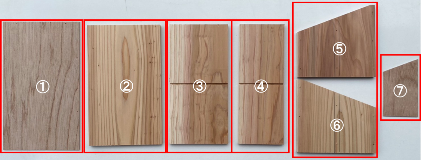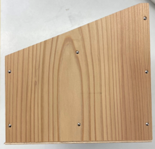 ⑥斜めになった板(側面用)の材料を反対側に当てて側面を完成します。