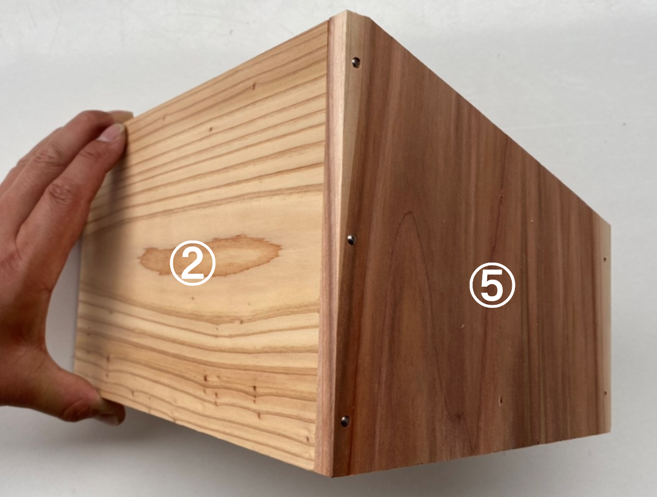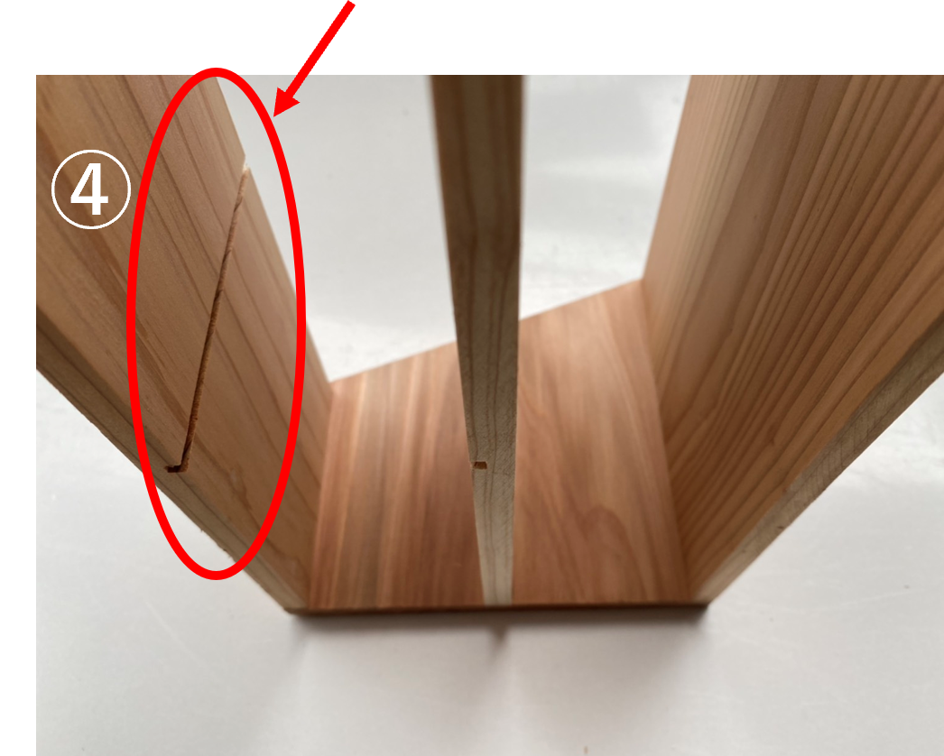 ※溝の位置に注意しましょう!③の板と溝がむきあうようにします!