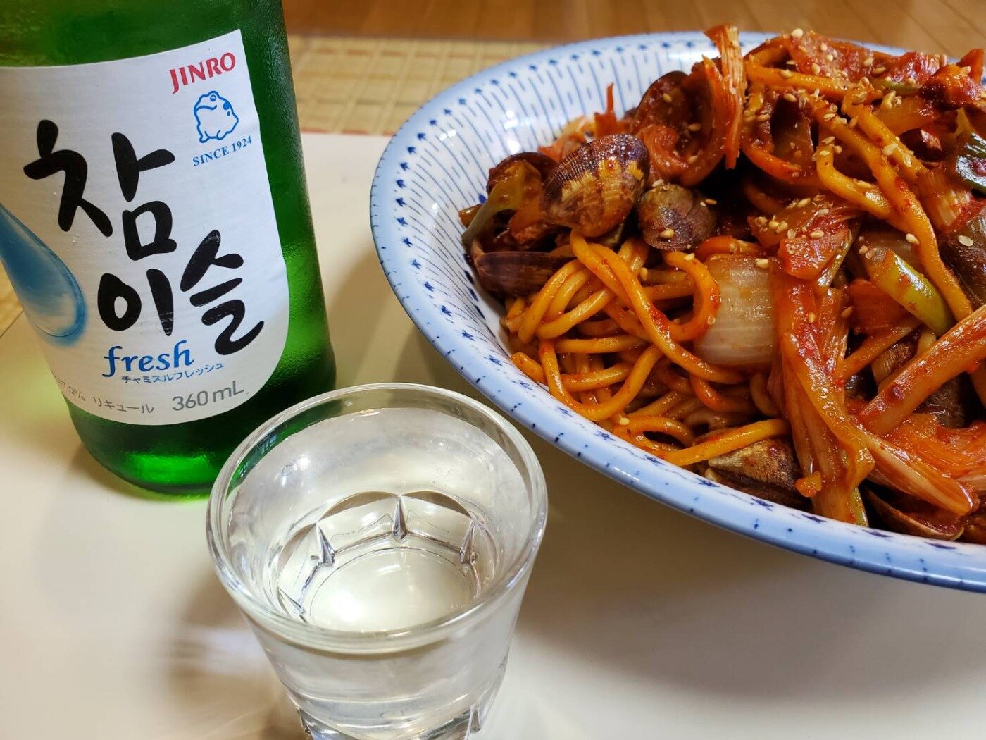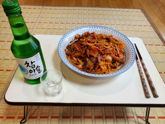 味見を兼ねて嫁に感想などを聞くためでしたが、コチュゲッティーもチャミスルも瞬時に無くなりました。