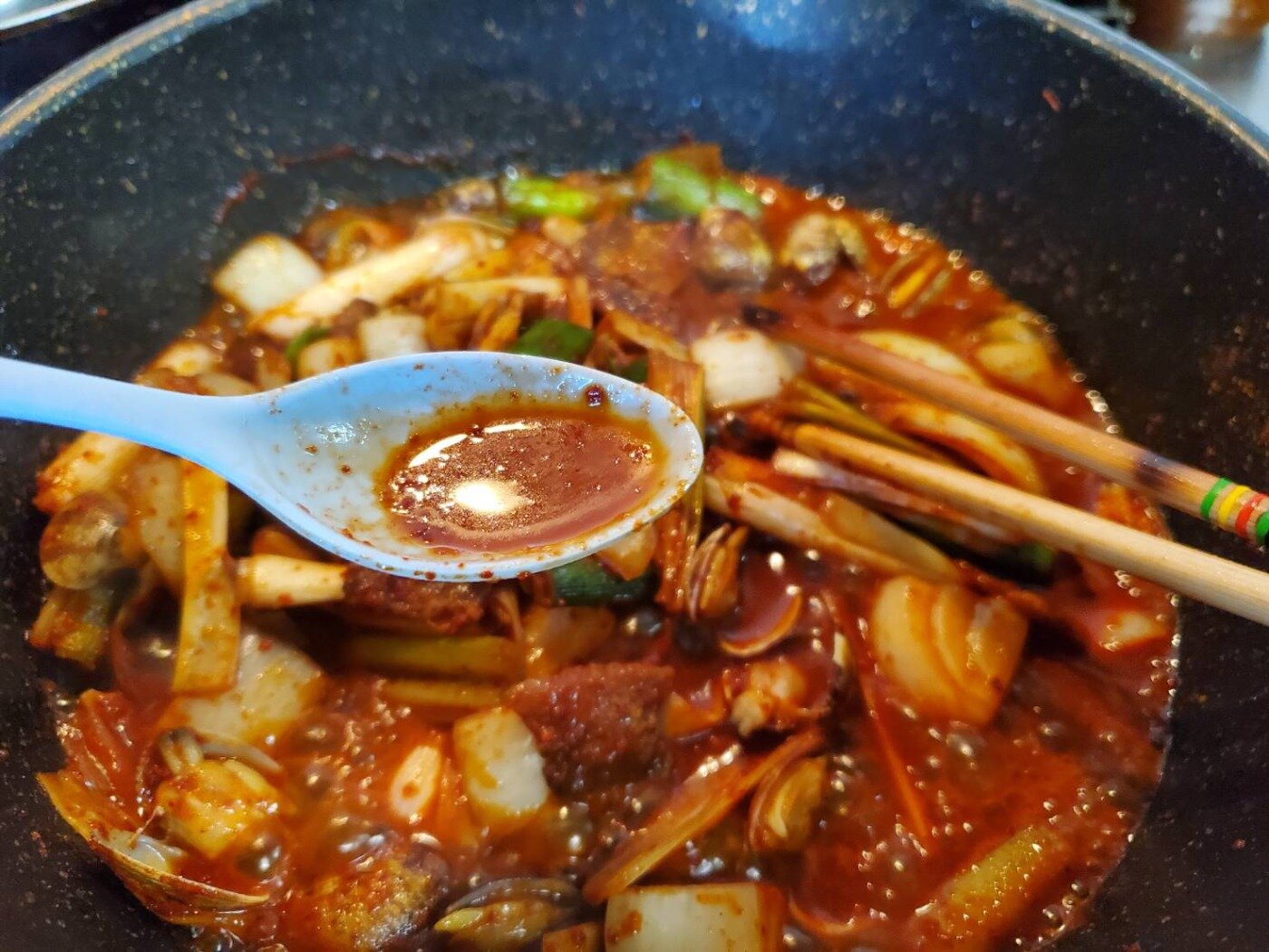 辛いけど止まらない食欲と汗、そして冷たく冷やした「チャミスル」と一緒にグイっと!!