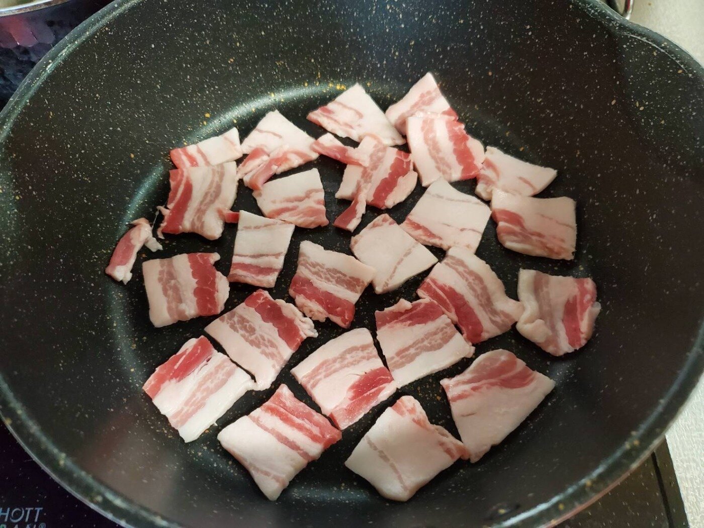 ニンニクは3~5片を(お好み)を乱切り(適当)にします。うまく説明できませんが写真を参考下さい。