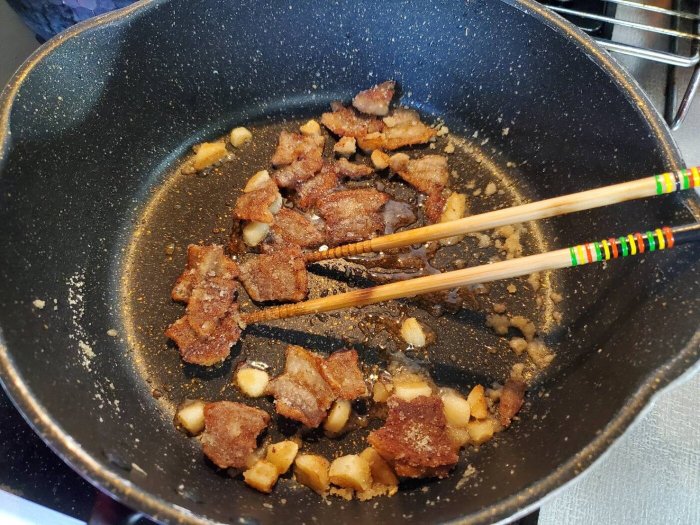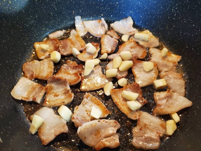 まずバラ肉を炒めます!