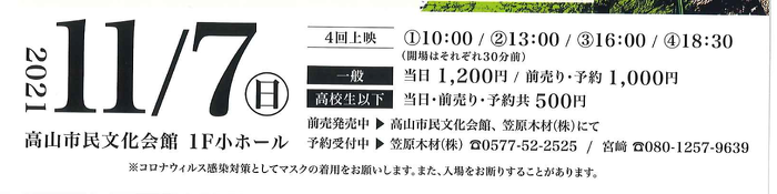 上映は2021年11月7日 日曜日 高山市民文化会館 1F小ホール