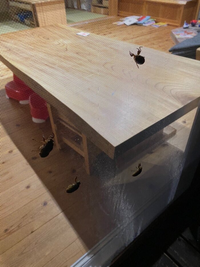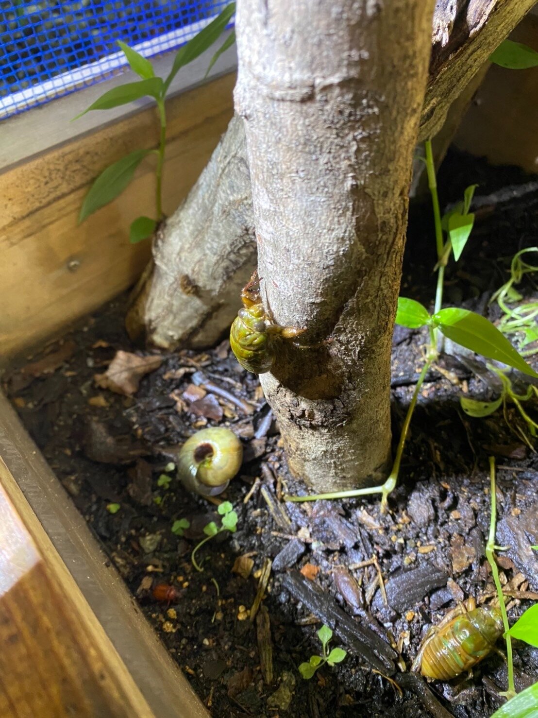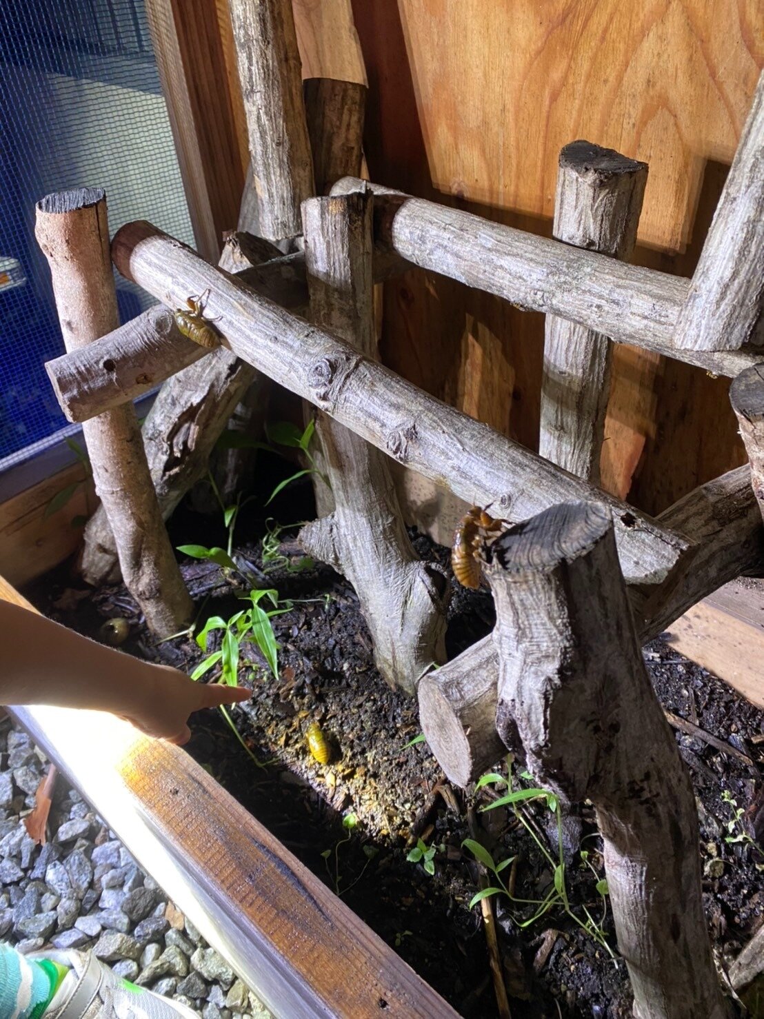 帰ってきてから、自宅のインセクトハウスにセミの幼虫を入れてみます。