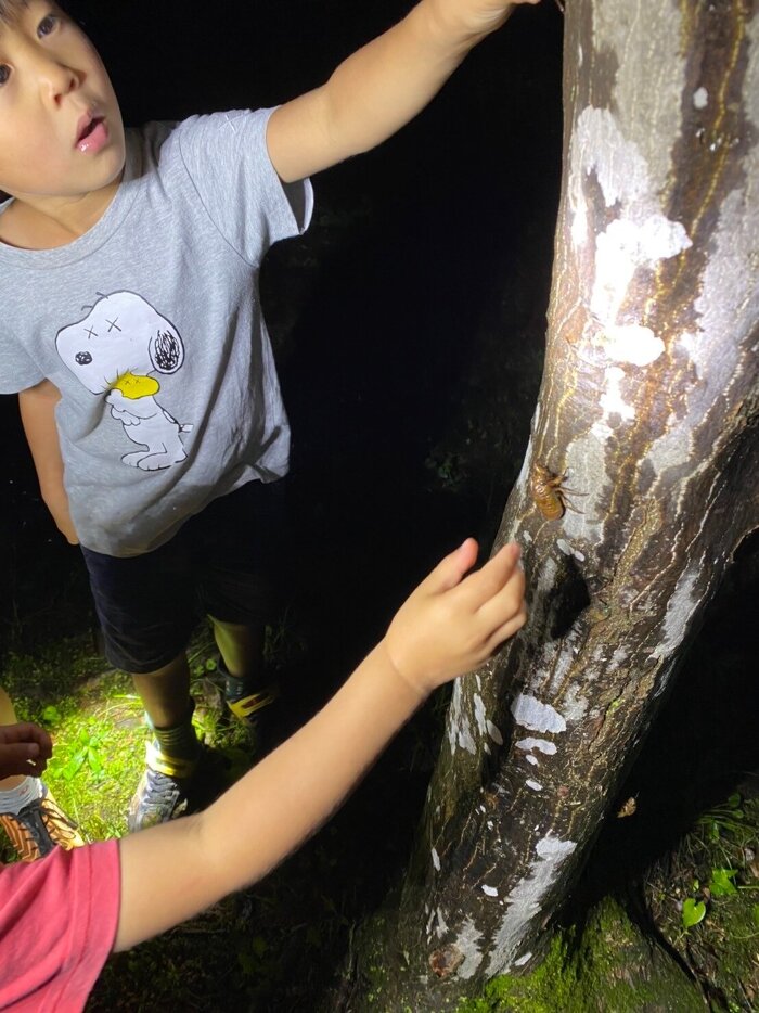 夏の夜に、近所の公園へ行ってセミの孵化を観察してみよう!