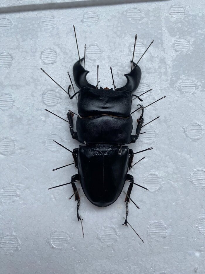 庭に置いてあった薪割り台としていたナラの木の樹皮を三男がめくったところ、超小型のコクワ(オス)の成虫がでてきました。