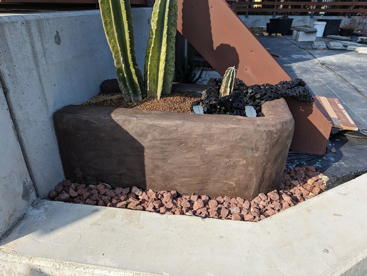 ブロックを積んで、その周りをモルタルで形どり、色を塗ったとの事で、