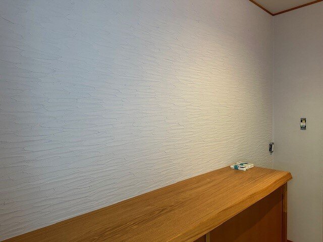 コテ使いで仕上げられた絶妙な凹凸が照明の光によって陰影を醸し出し温かみのある空間になりました。訪れた方にも心地よさを感じていただけそうです。