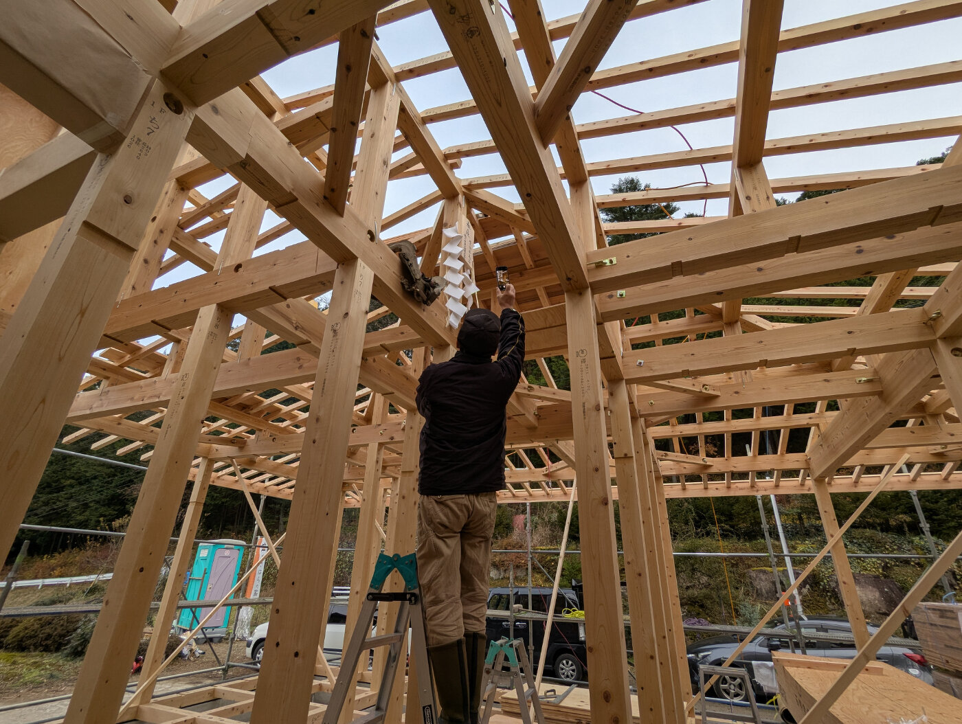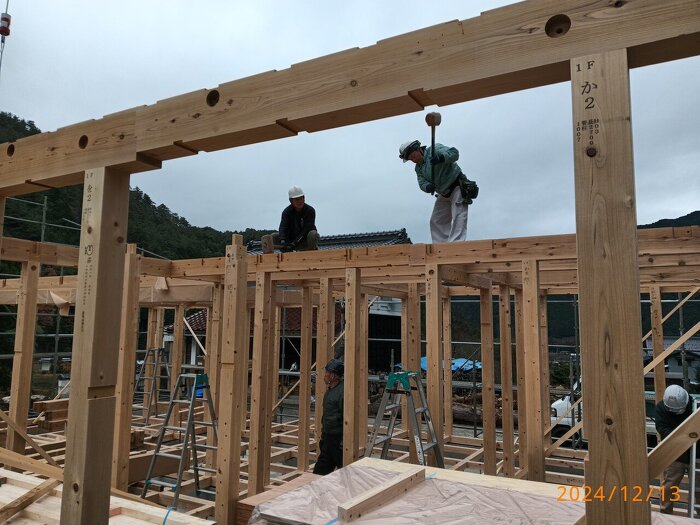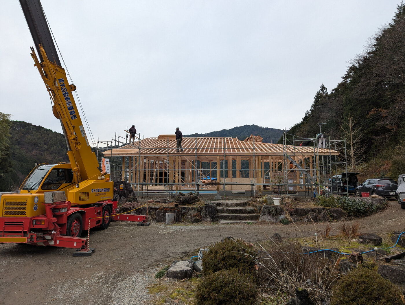寒い中、大工さんはじめ、クレーン車のオペレーターの方など、安全に作業を進めて頂きありがとうございました!