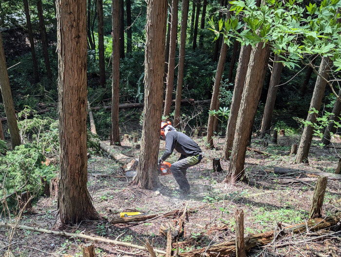 ↓ 下記の写真は、伐採から製材、建て方までの様子です!