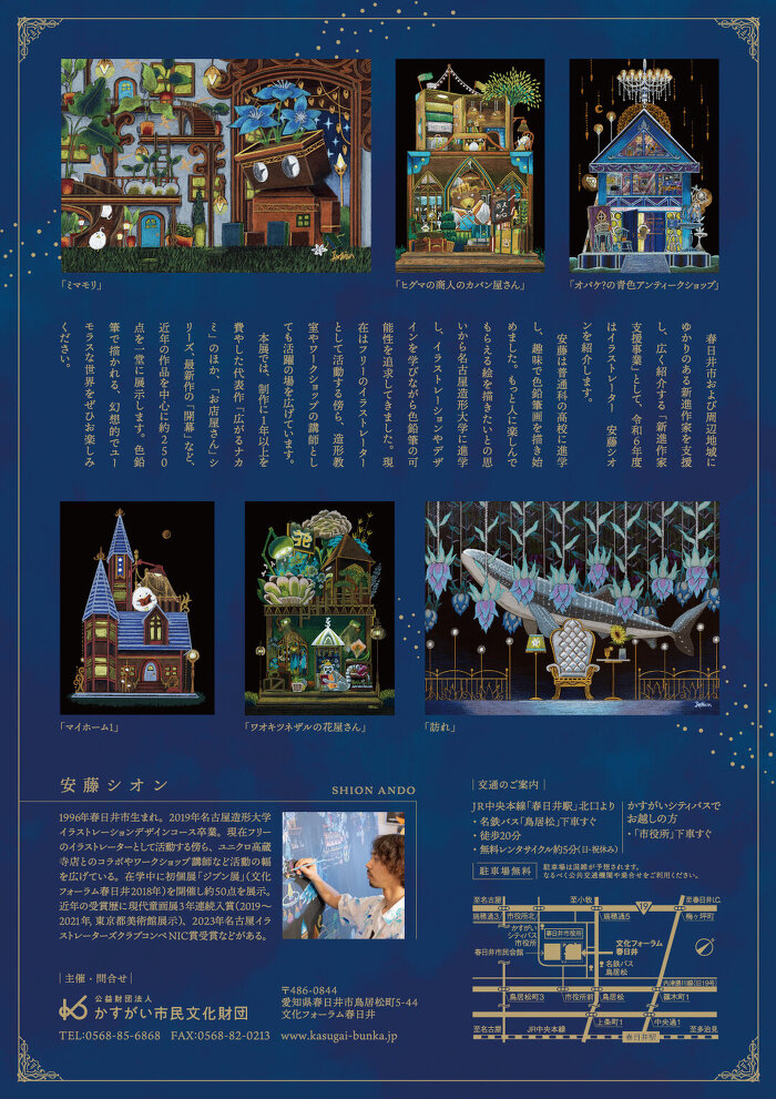 春日井市および周辺地域にゆかりのある新進作家を支援し、広く紹介する「新進作家支援事業」として、令和6年度はイラストレーター 安藤シオンを紹介します。
