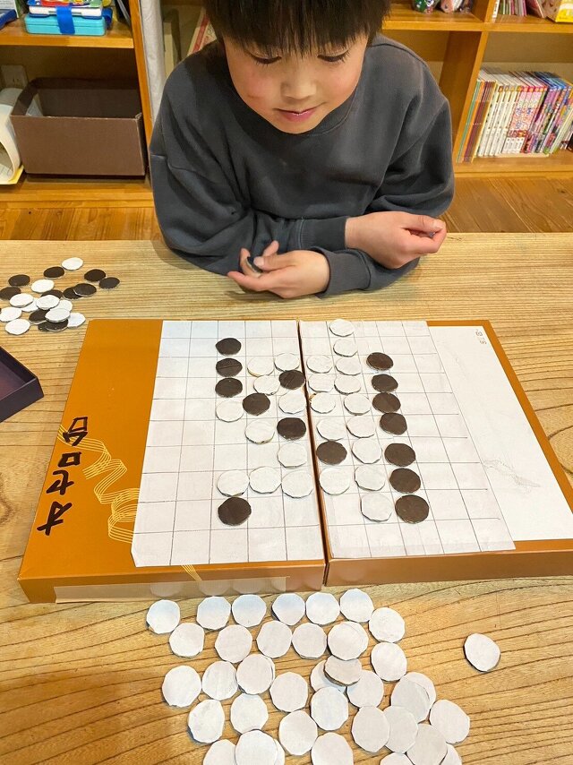 こんにちは。 石井です。 最近長男がはまっているのがオセロです。 以前に8×8のモノを自分で作っていたのですが 先日帰ってくると、10×10のものを作っておりました。 コマが100個ですからね。相当大変そうでした。 段ボールの丸はレゴの丸いので型取り。 白面は紙を... 続きを読む