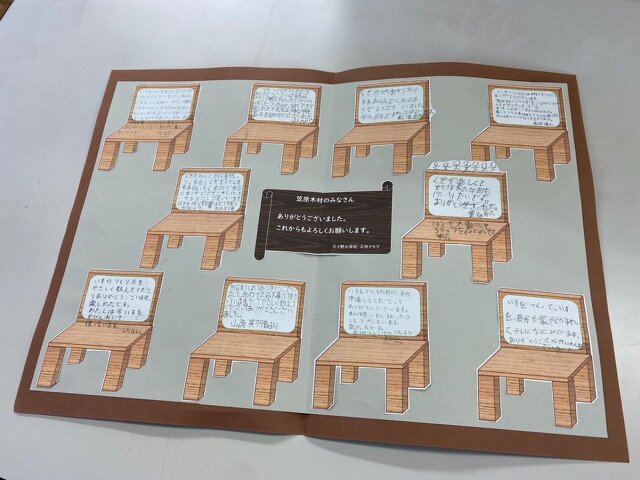 こんにちは。 スタッフ石井です。 毎年、久々野小学校の木工クラブ様より、工作教室のご依頼を頂いております。 今年も秋にキッズチェアを作りまして、こんなお礼を頂きました。 こちらこそありがとうございました! 子ども達の、頑張って製作している姿を見るだけで... 続きを読む