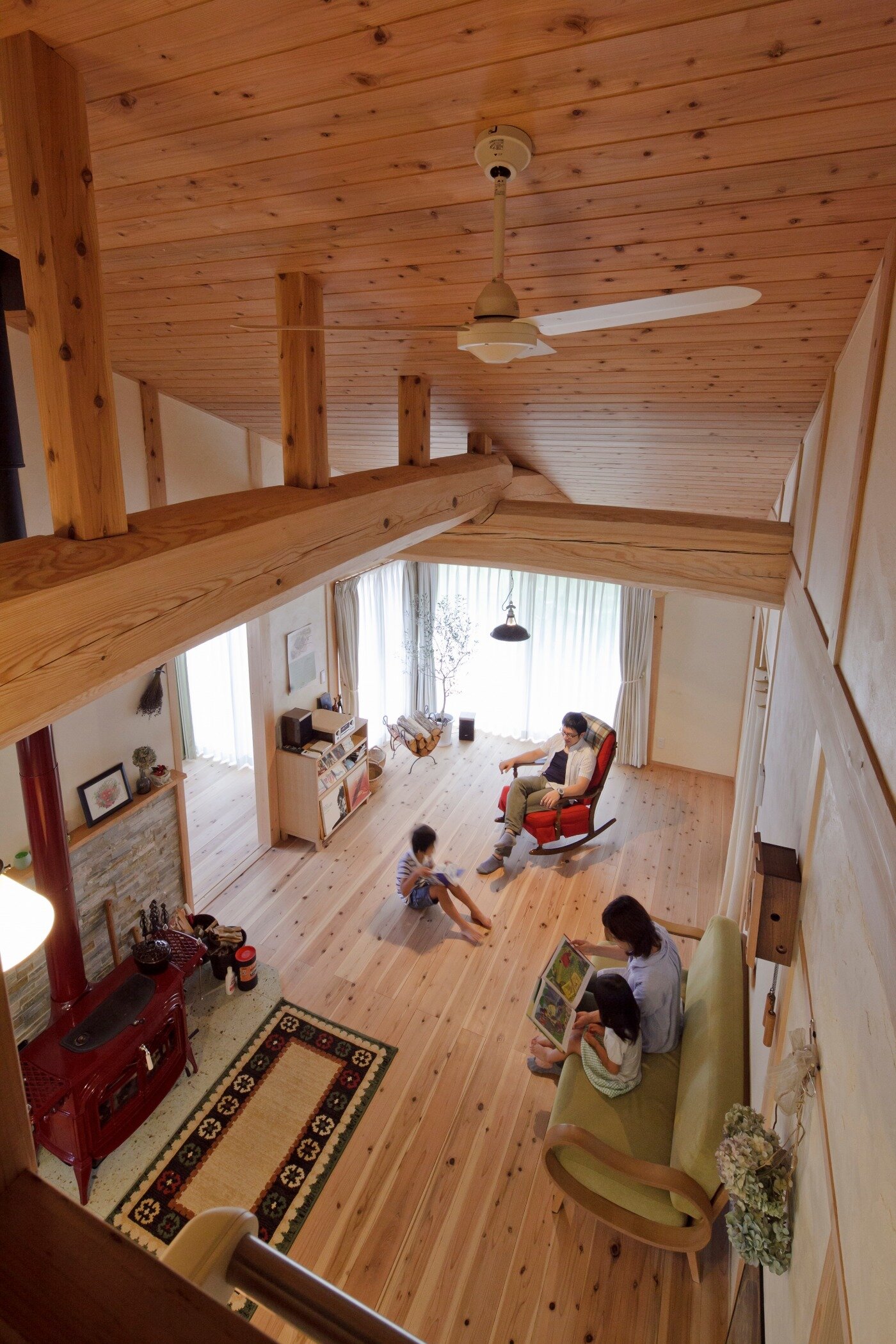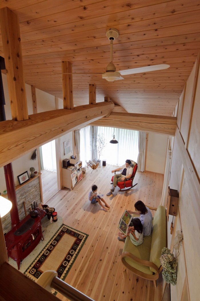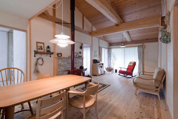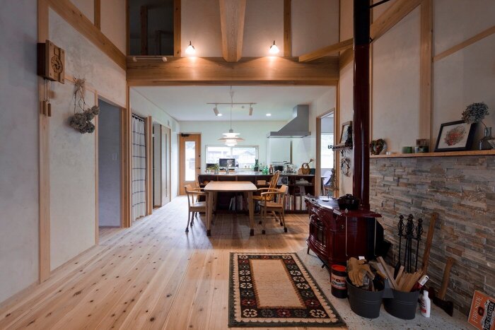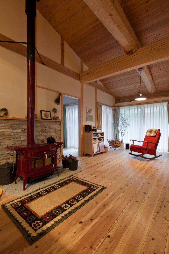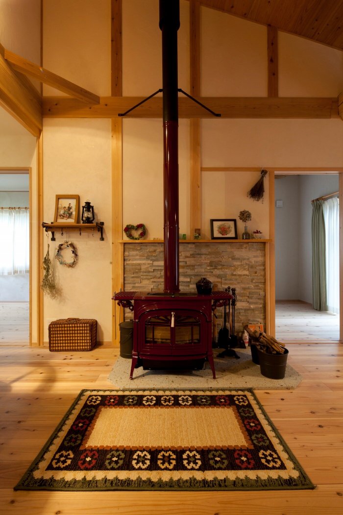 みんなが集まる空間には薪ストーブもあり家族団らんが楽しめるお家です。