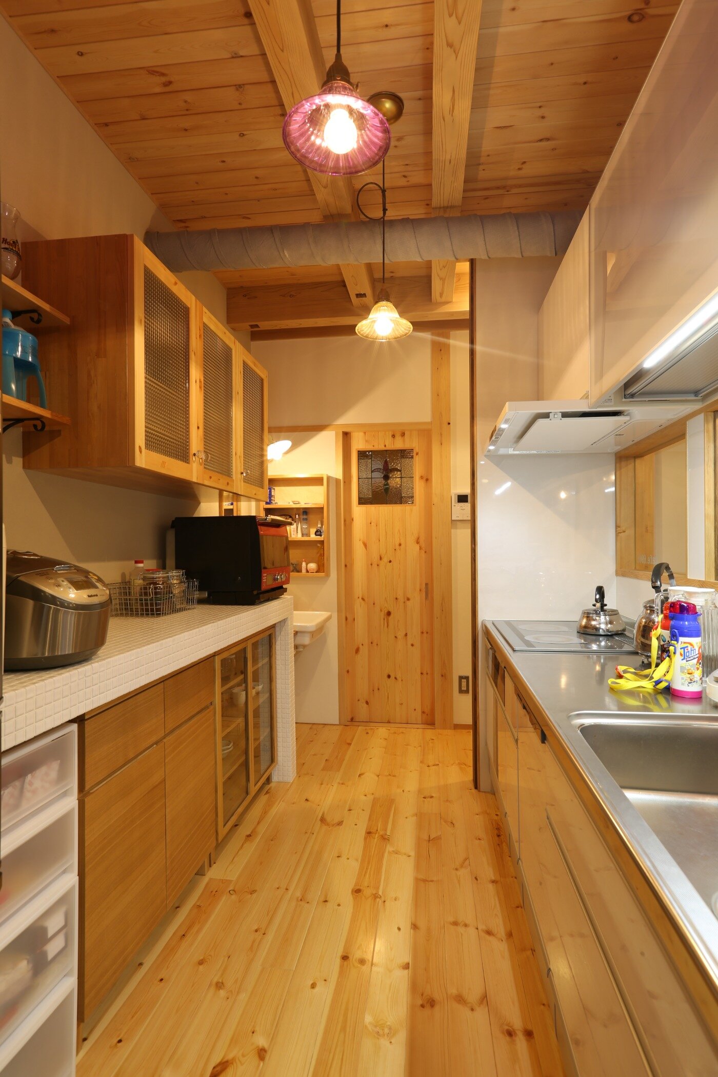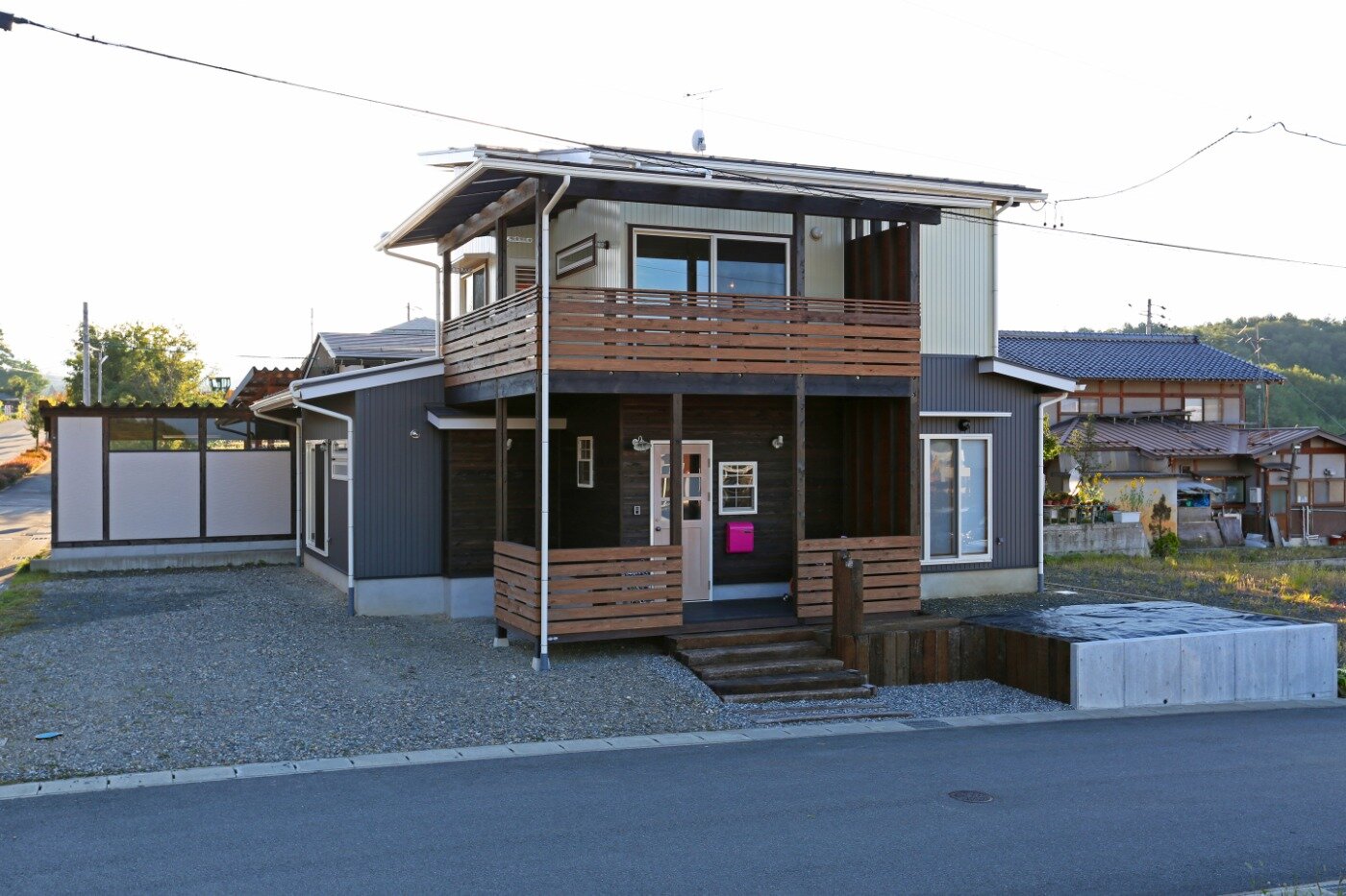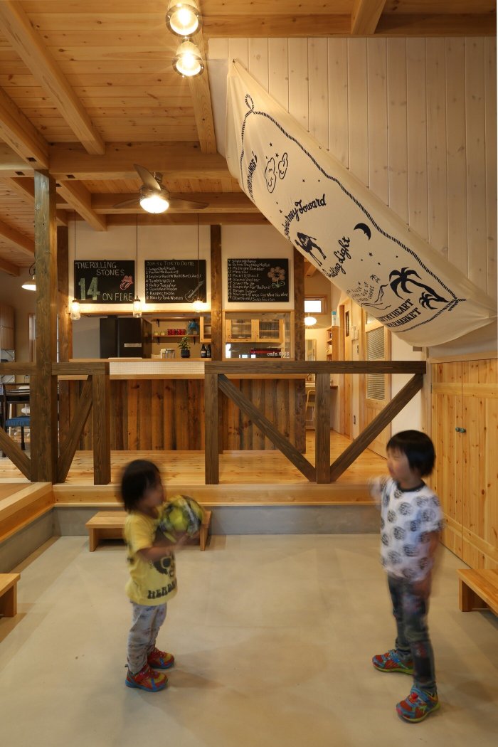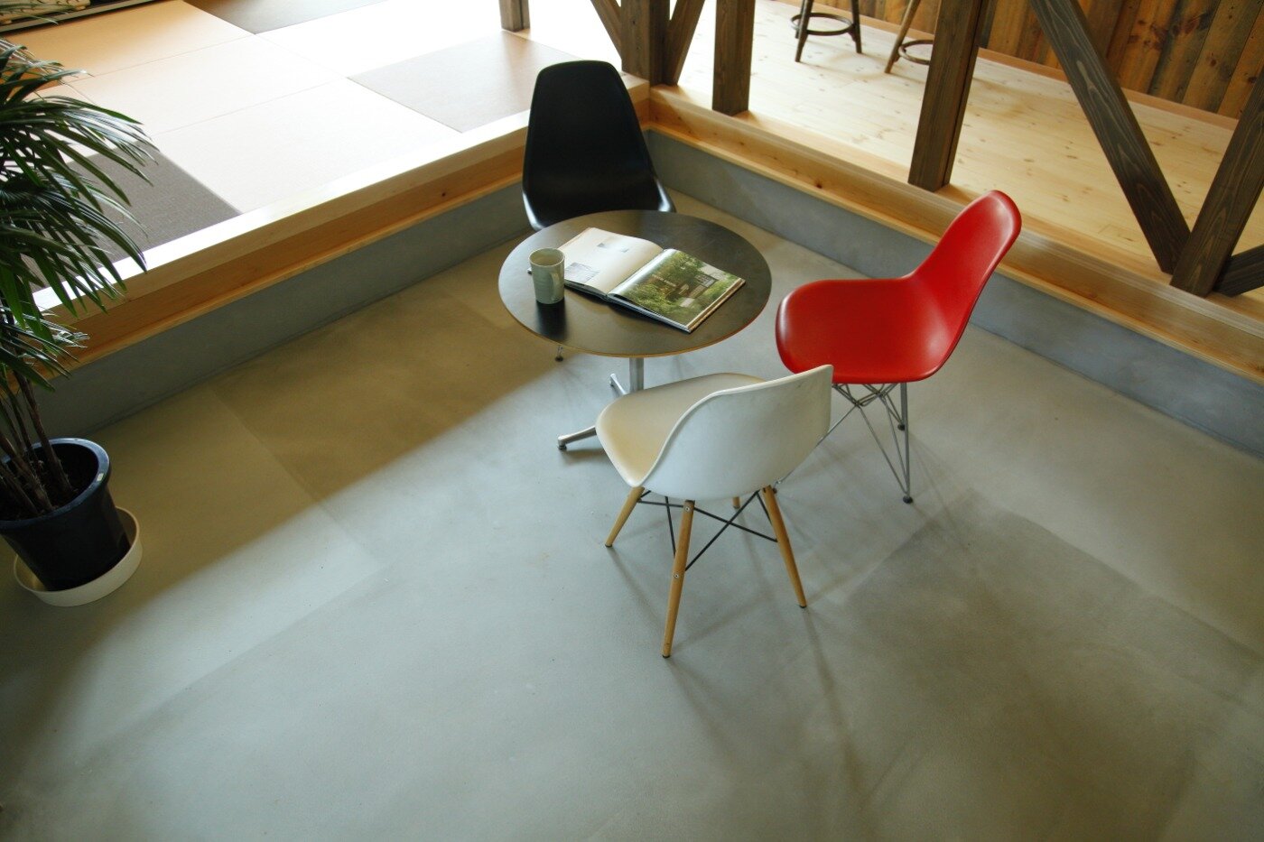 ガルバリウムを壁に貼った土間スペースからつながるダイニングは、まさにカフェなお家。