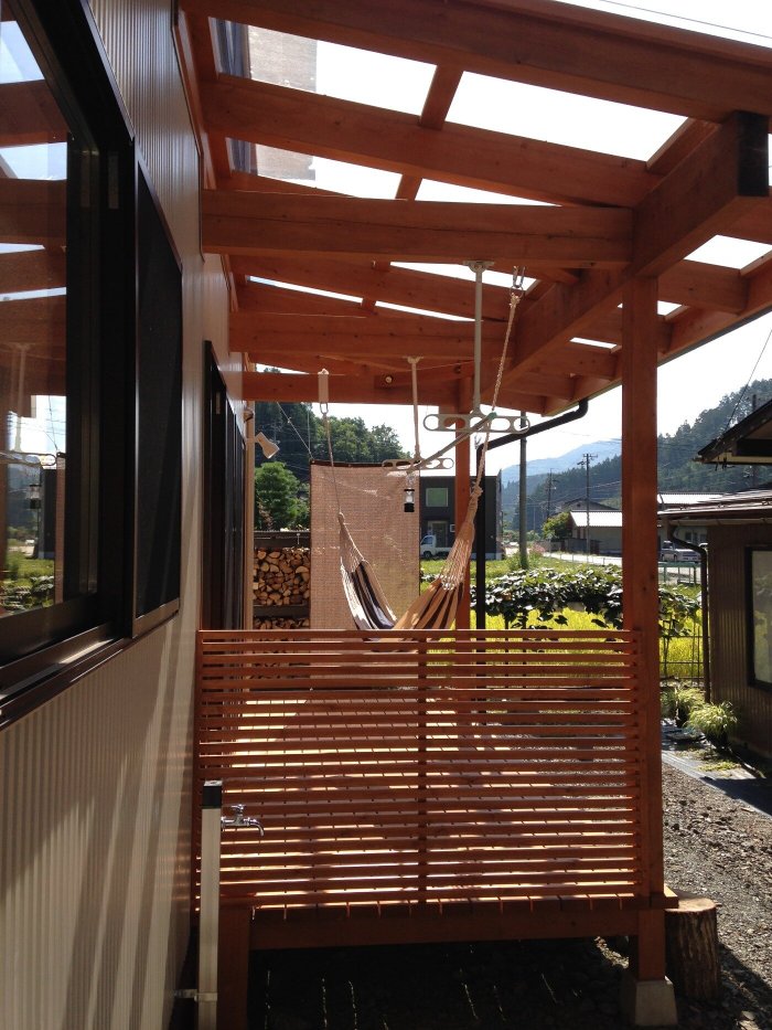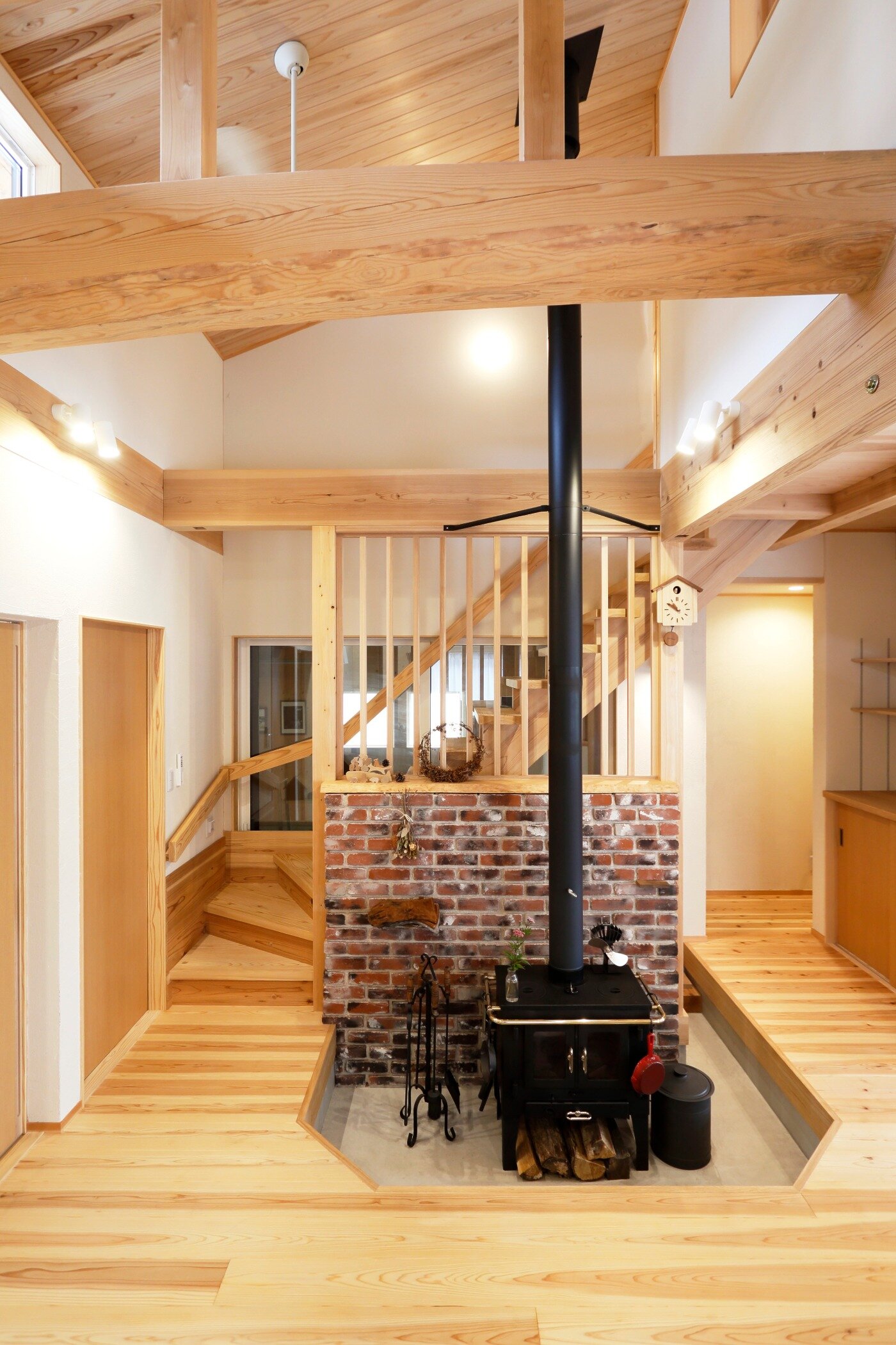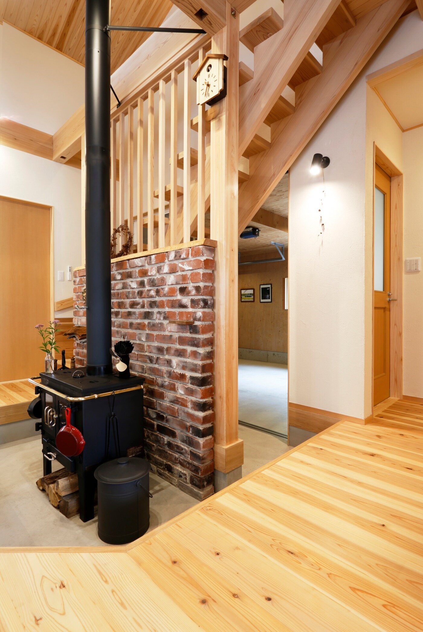薪ストーブの土間から続く空間。