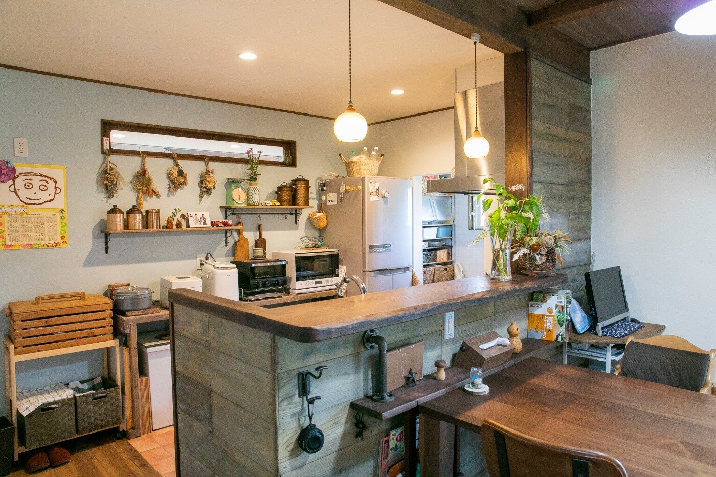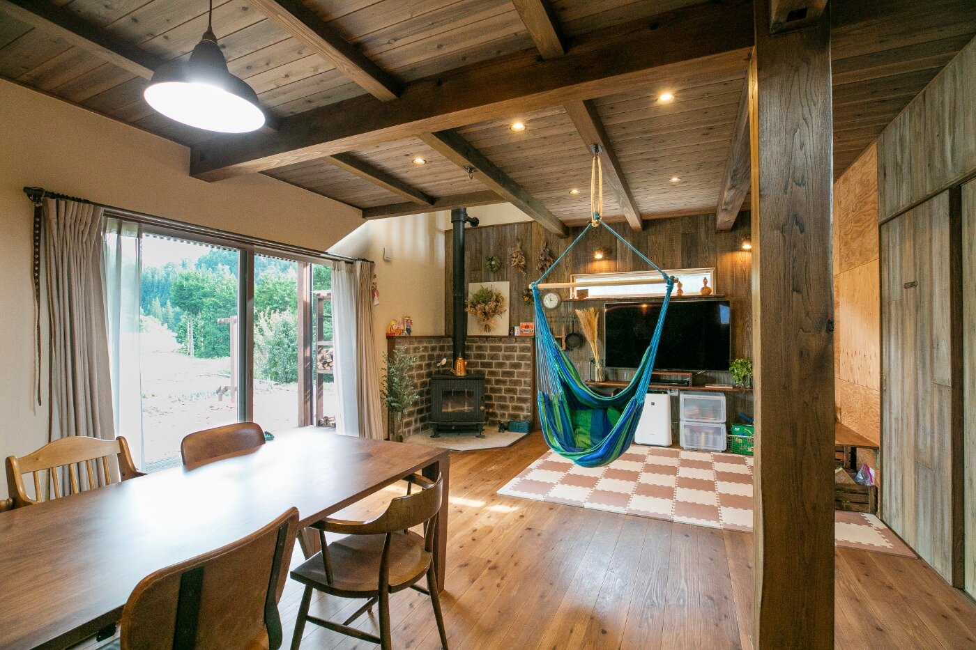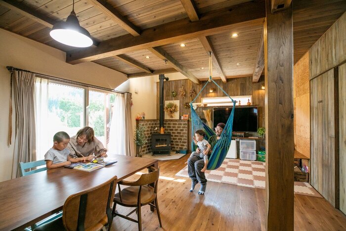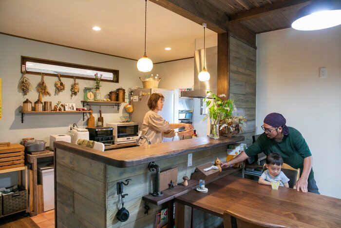 受け継がれてきた山の木を大黒柱に使用したこのお家は一部内装をDIYで。