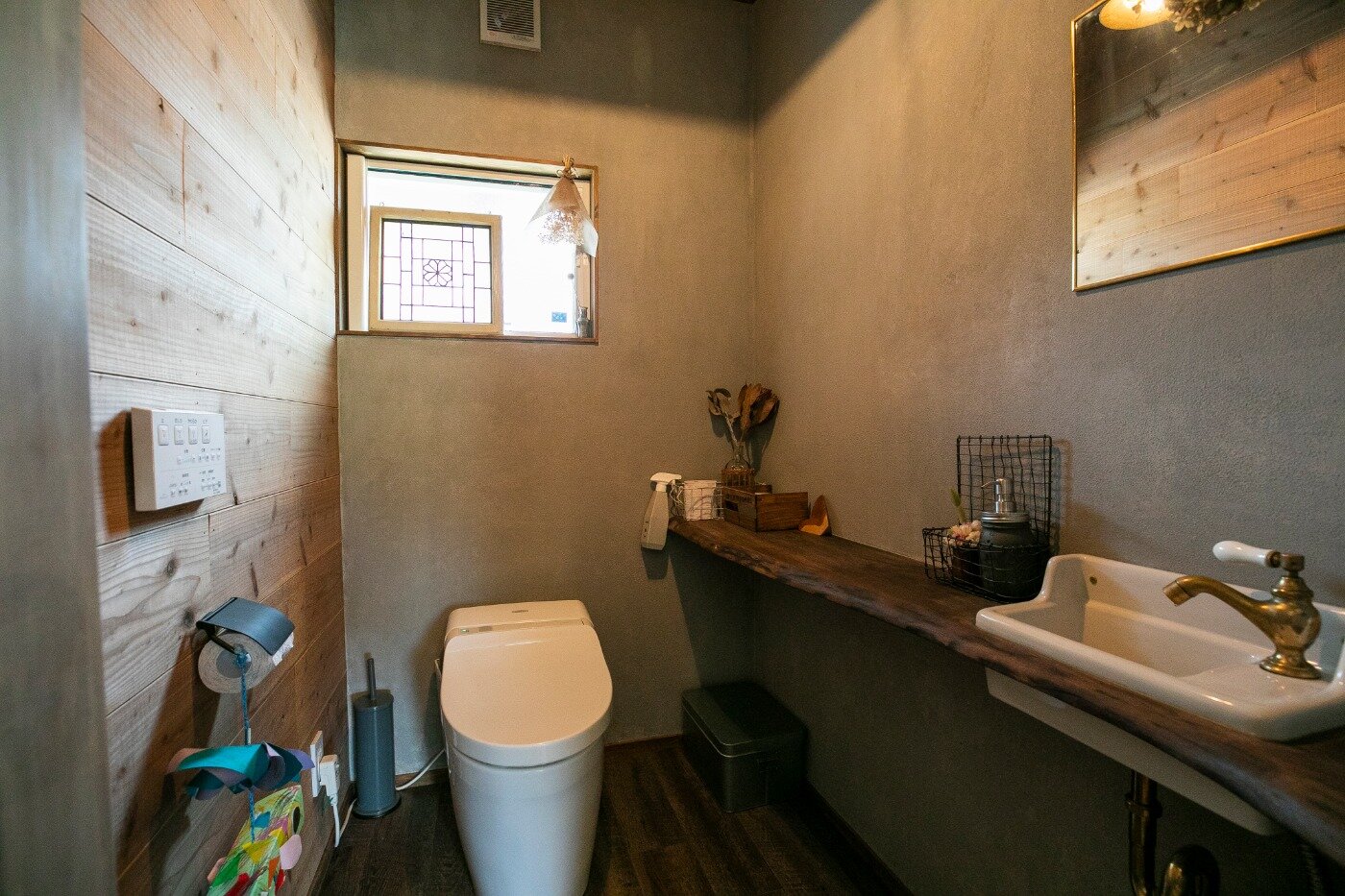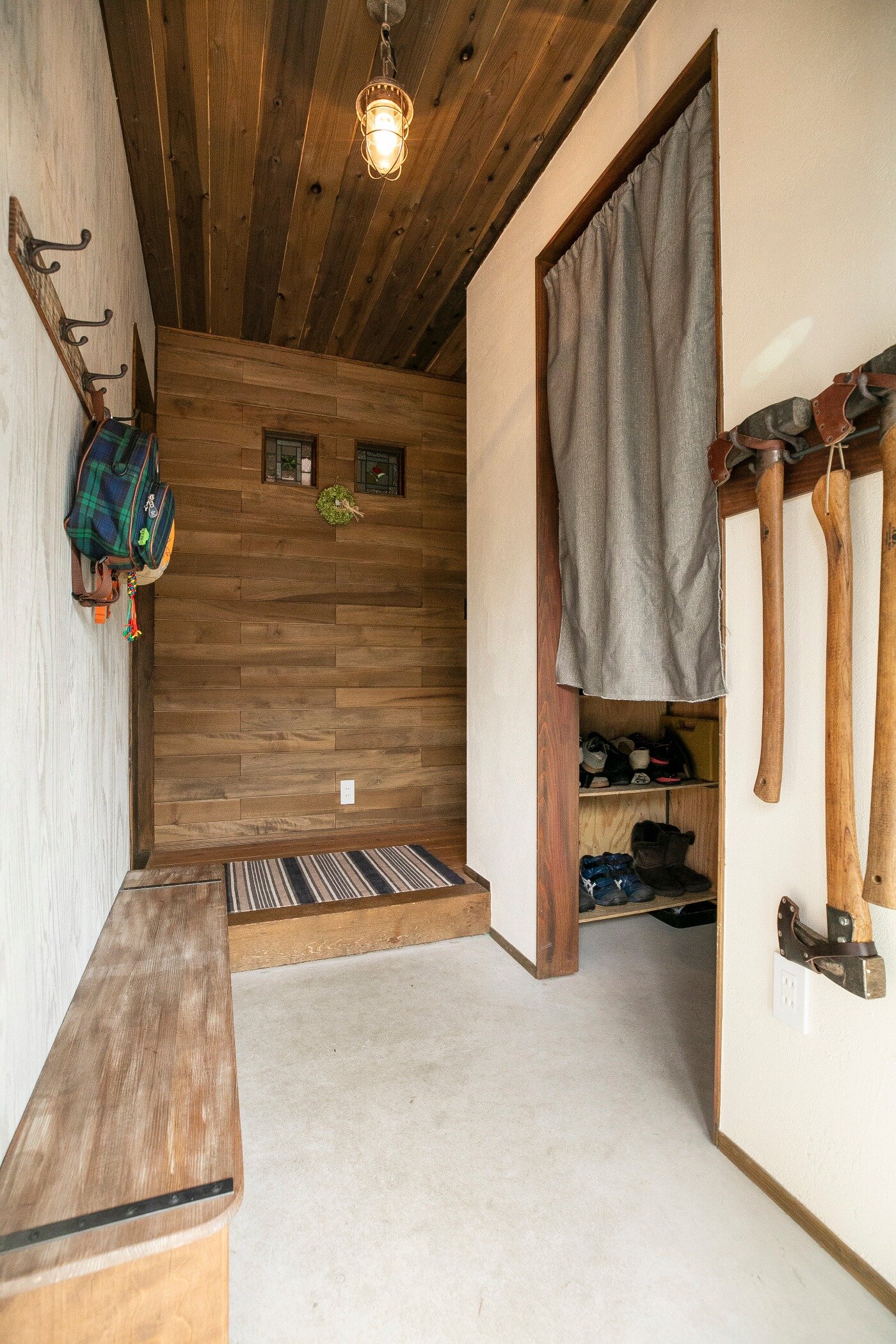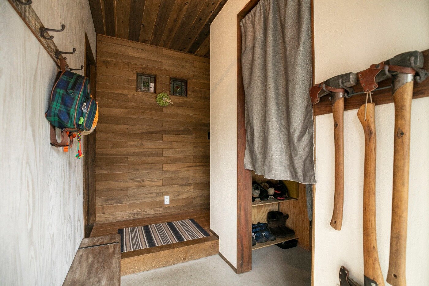 受け継がれてきた山の木を大黒柱に使用したこのお家は一部内装をDIYで。