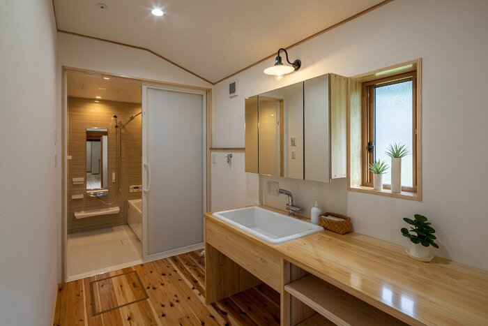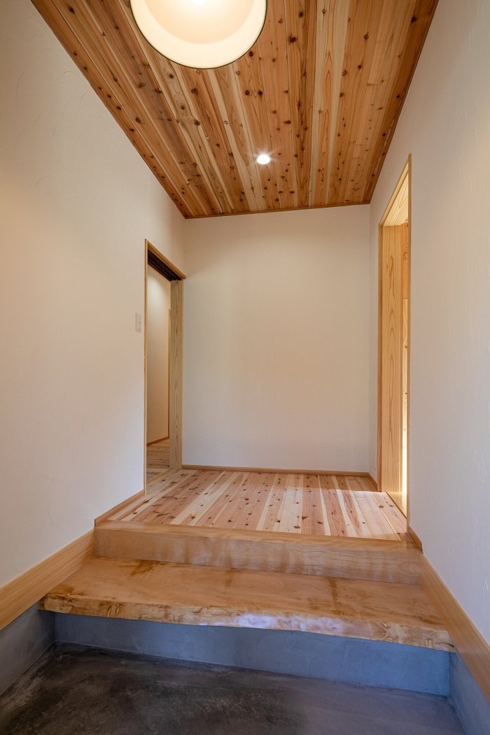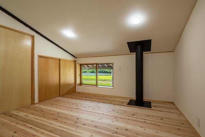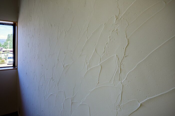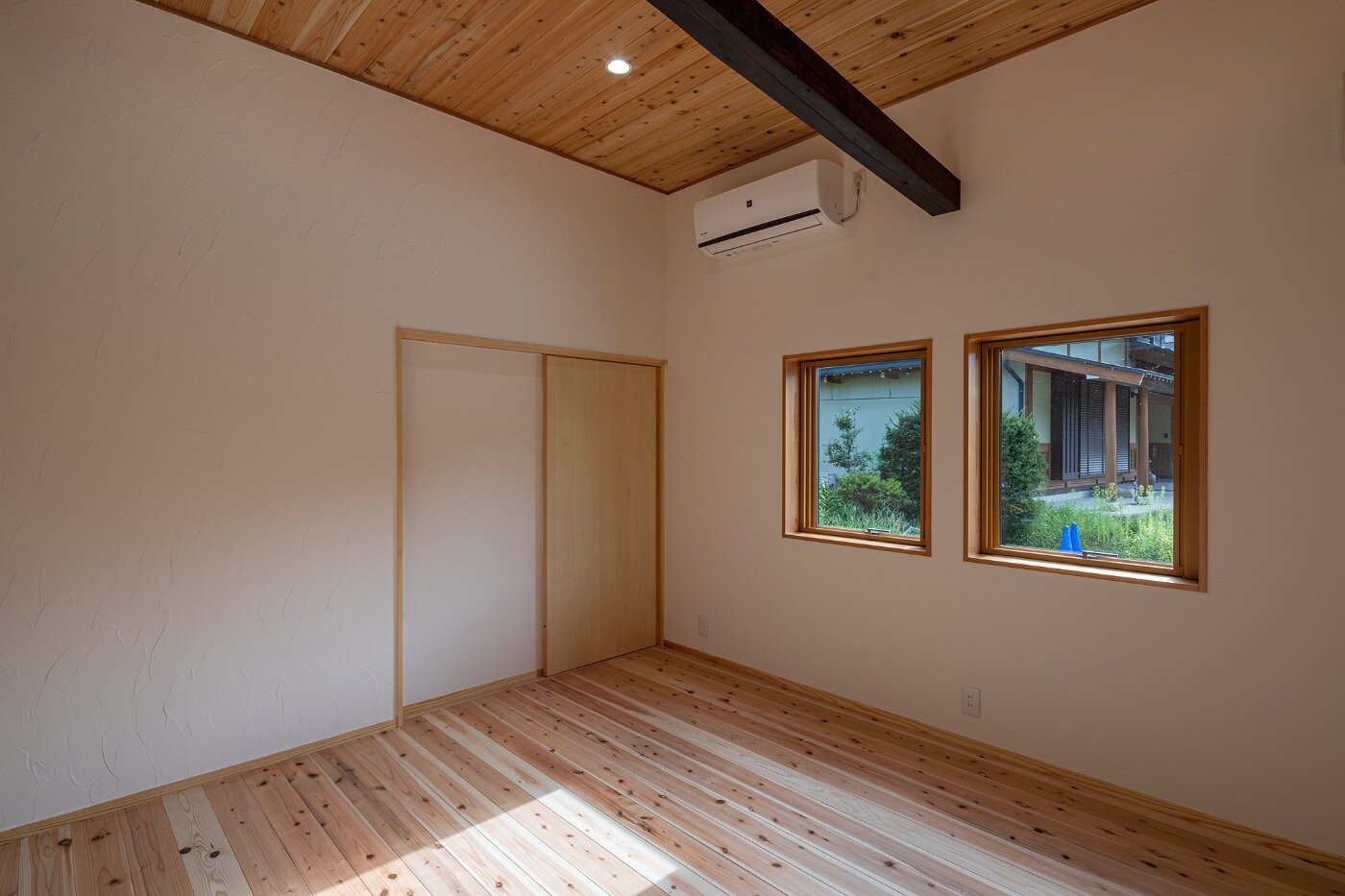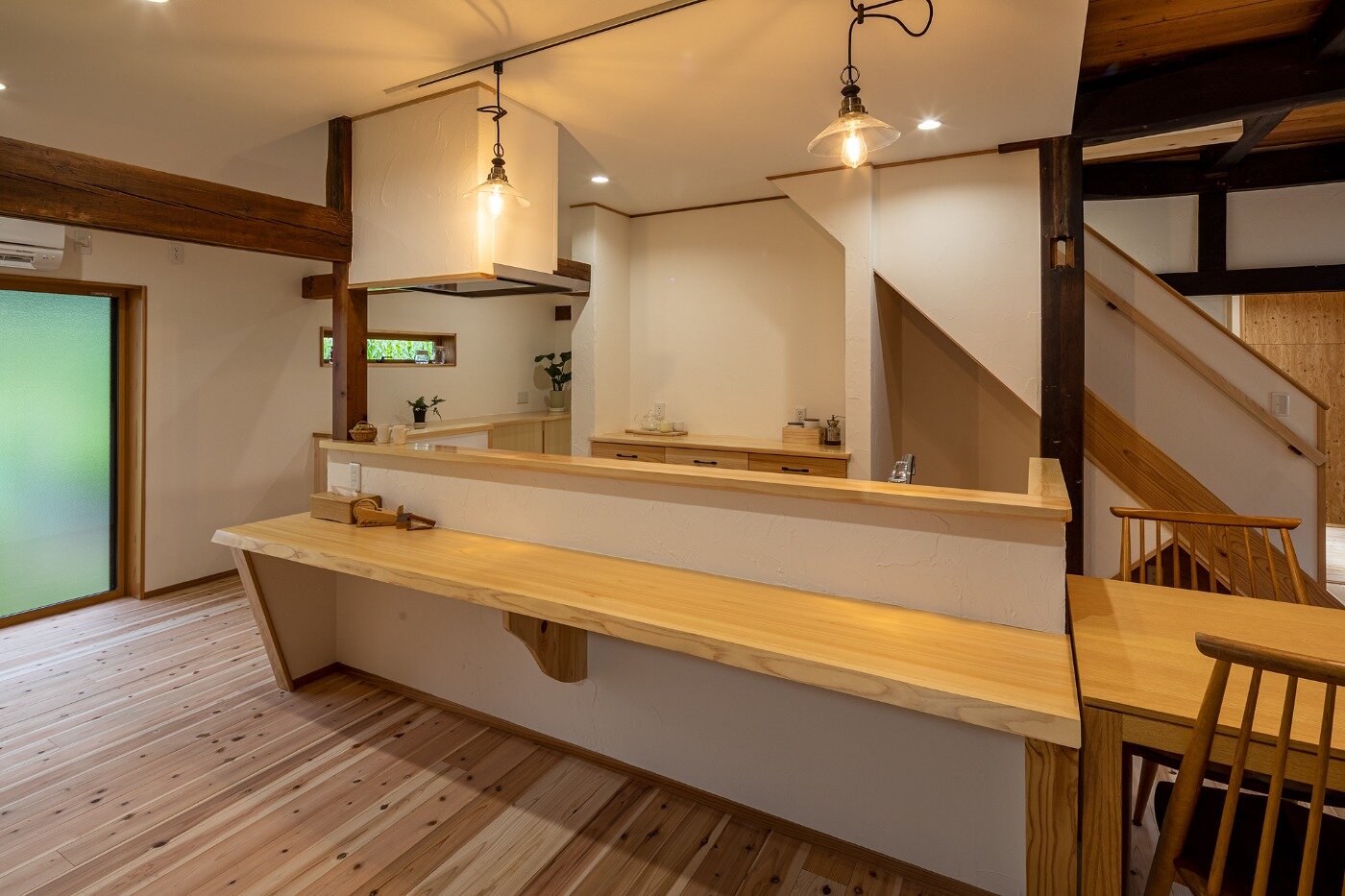 石の上に建っていたお家をジャッキアップして基礎をつくり、古材の梁を表しにして、壁は漆喰仕上げ。