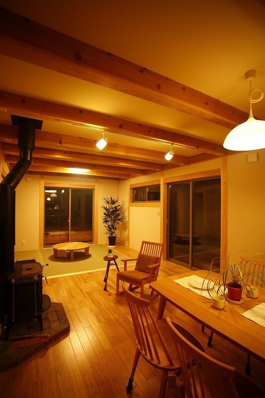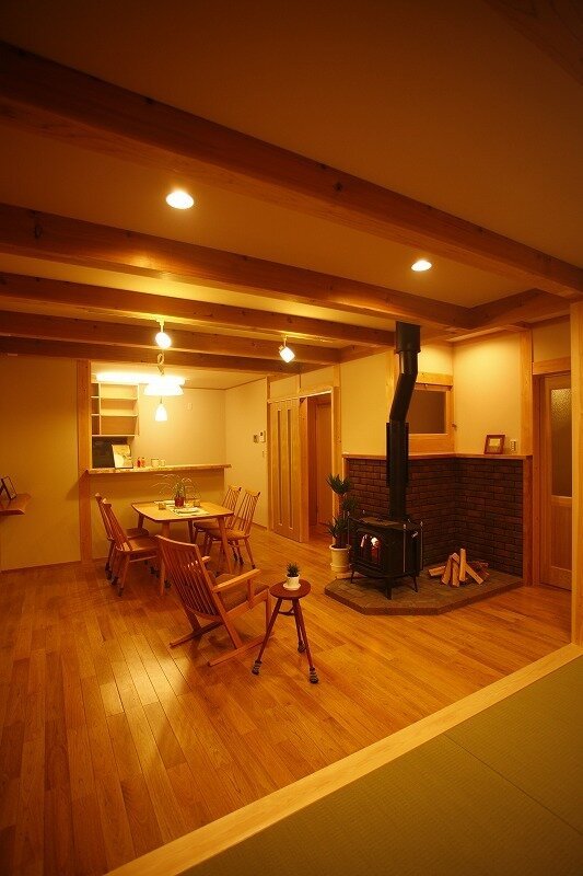 お家に入ると木のぬくもり、香りを感じながら、薪ストーブの炎の暖かさにホッとする空間となりました。