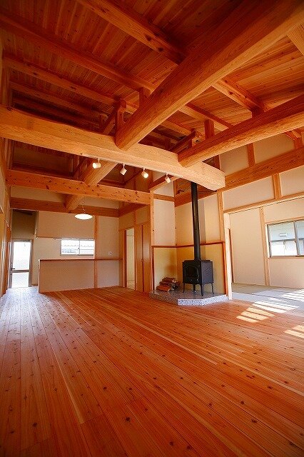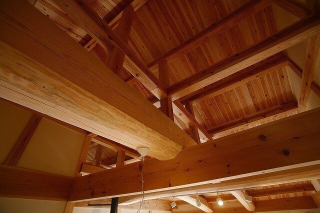大きな丸太梁の木組みが木の力強さを演出してくれます。