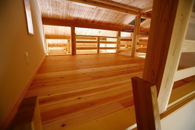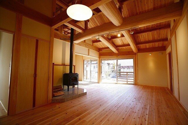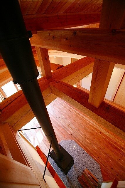 スギのフローリングは薪ストーブからの蓄熱効果も高く、冬でも素足で気持ちよく暮らすことができます。