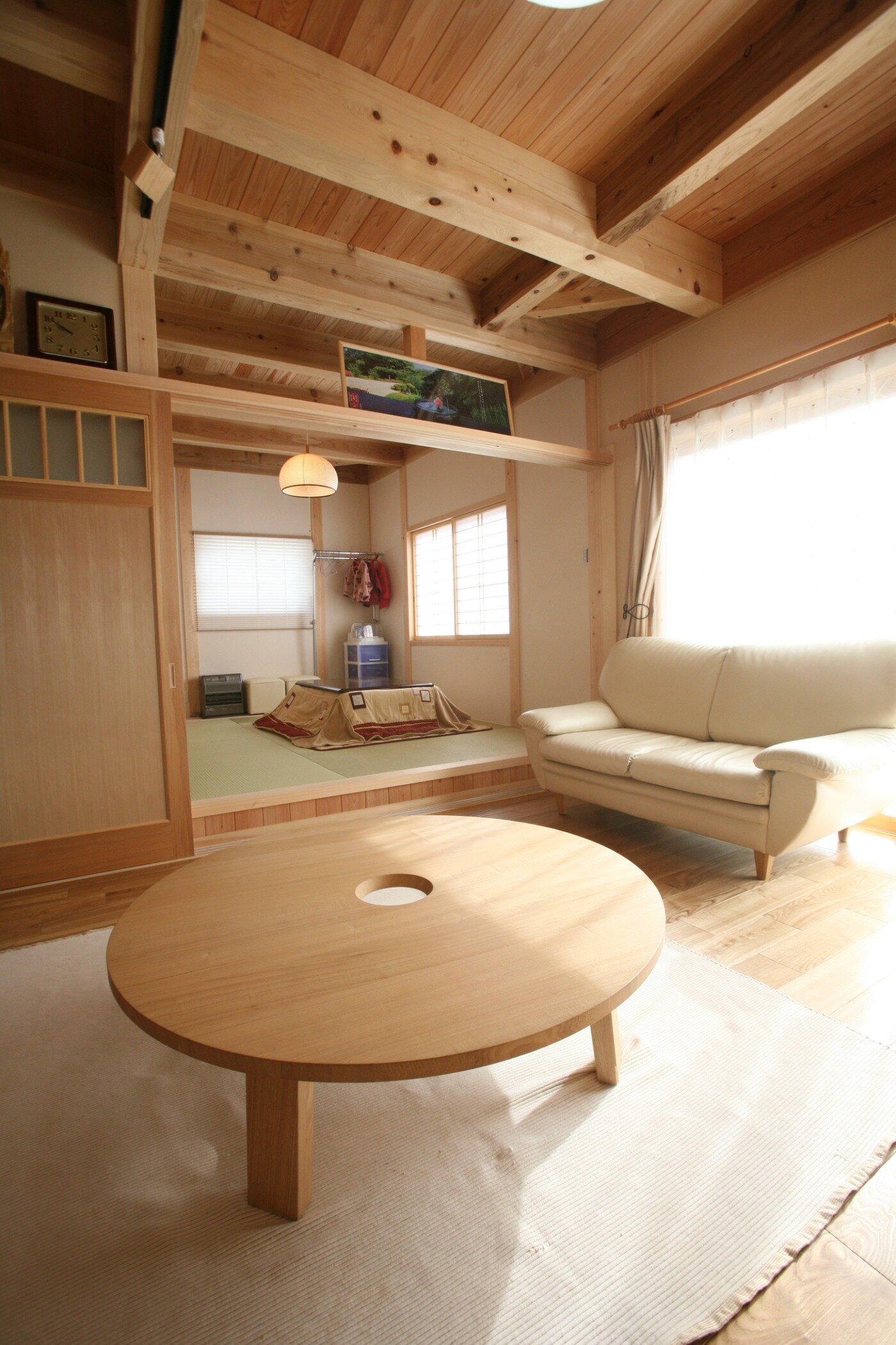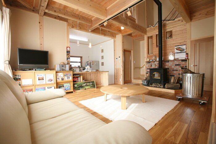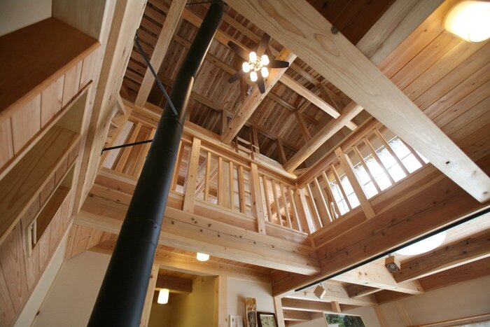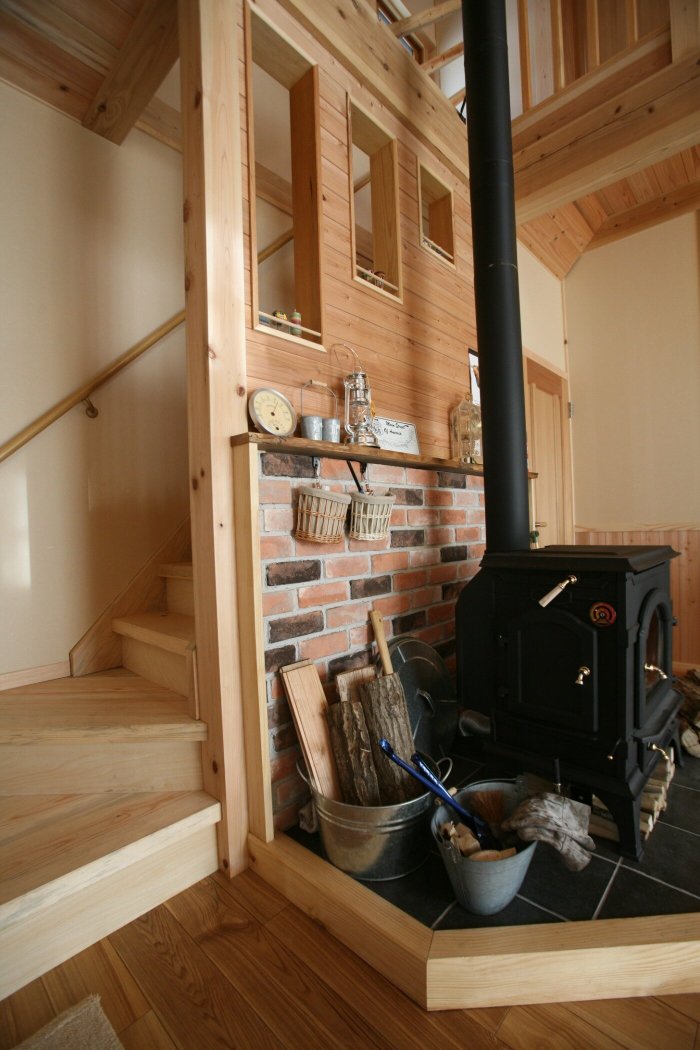 リビングの中心には薪ストーブと吹き抜けで家族の絆が深まるお家となりました。
