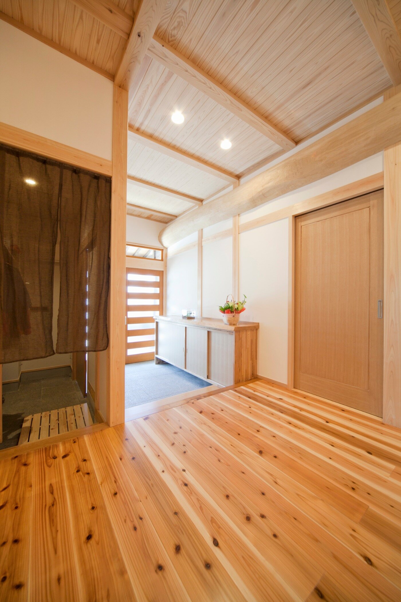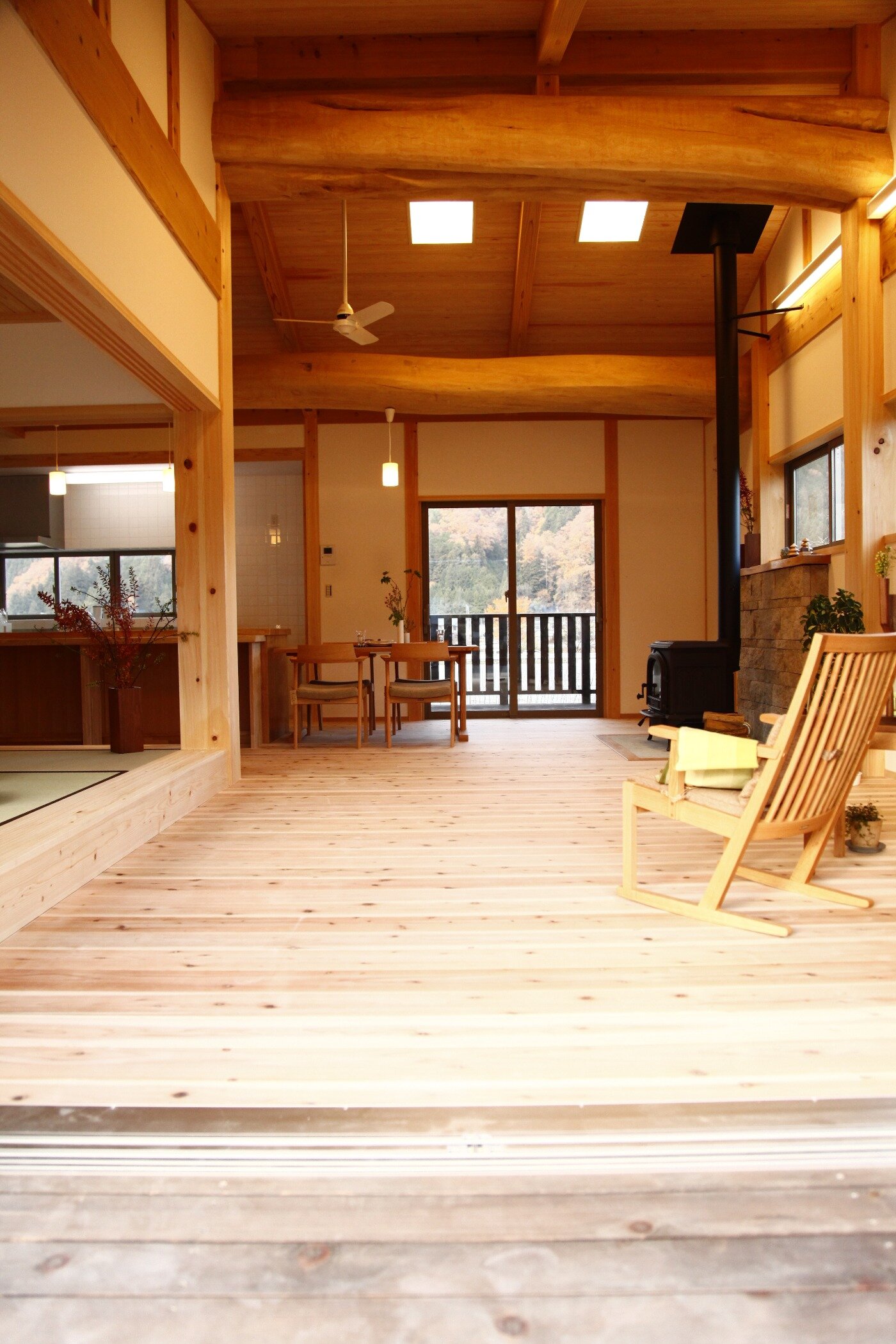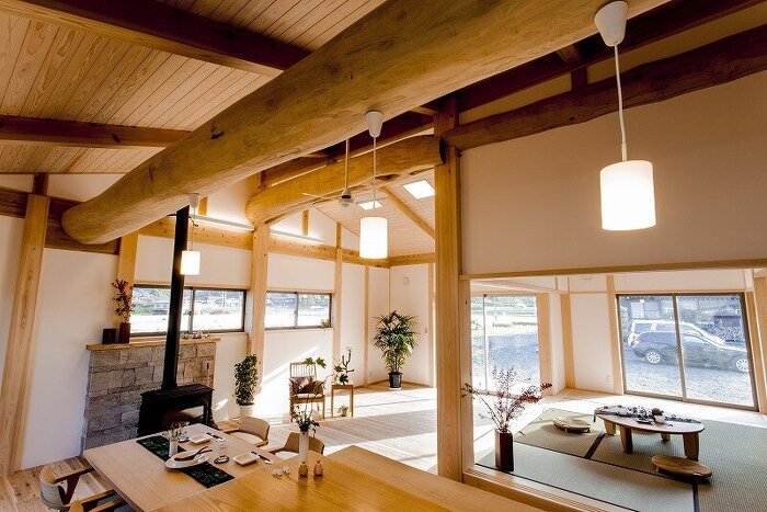 大きな丸太梁は圧巻です。