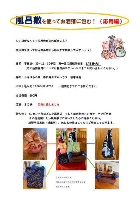 (春日井)手作り風呂敷ワークショップ (応用編)