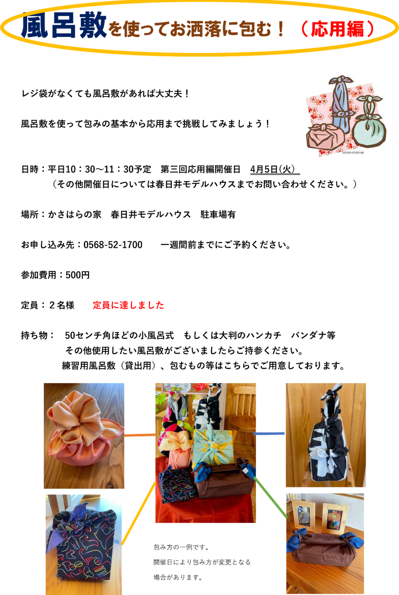 (春日井)手作り風呂敷ワークショップ (応用編)