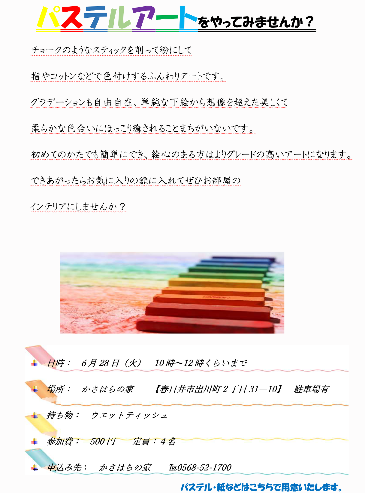 (パステル・紙などはこちらで用意します。)
