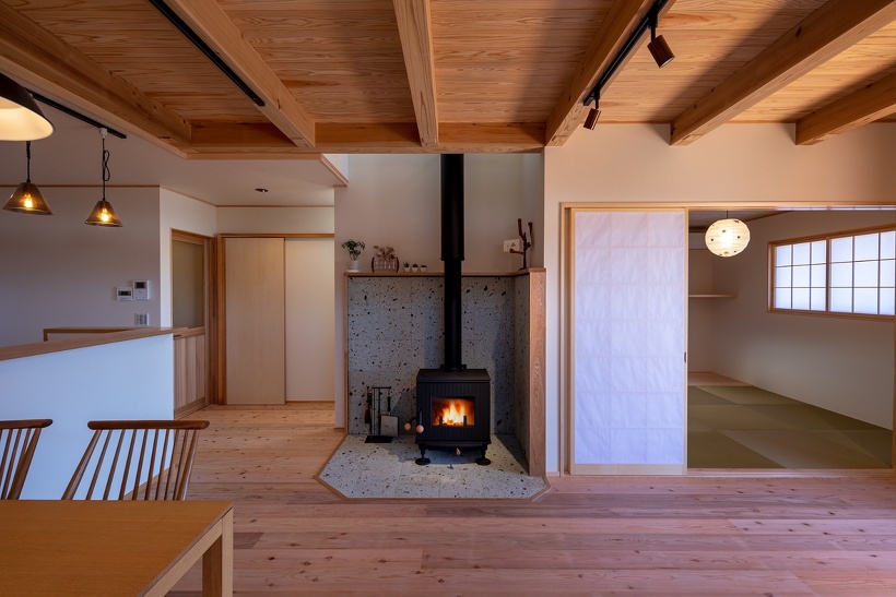 さまざまな使い方ができる畳コーナーやキャンプ用品が収納できるクローク。身体の芯から暖めてくれる薪ストーブ。ほっと一息できる家事室など、見どころ満載です。