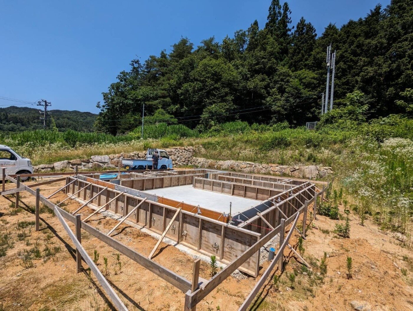 立ち上がりコンクリートの型枠を組みました。